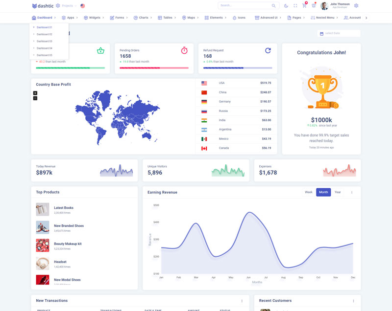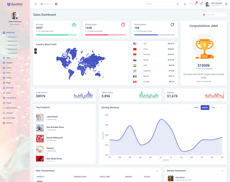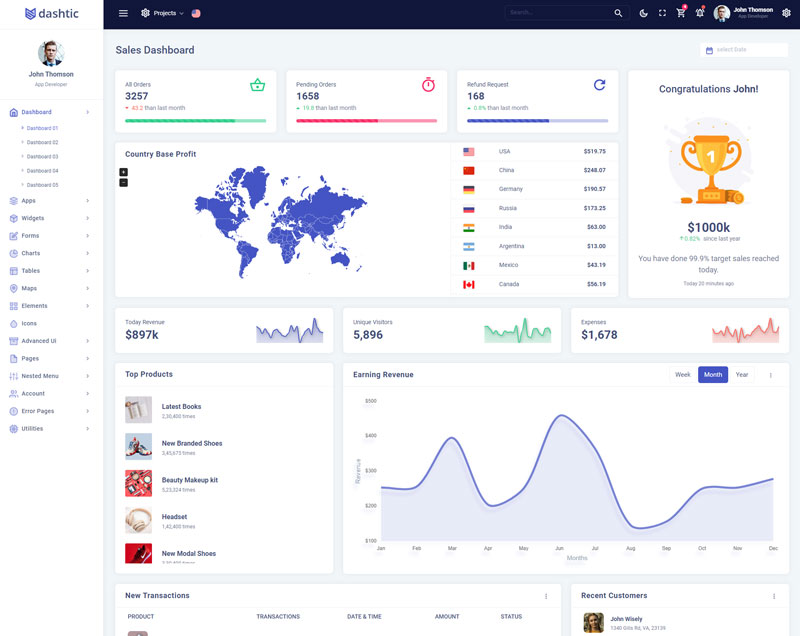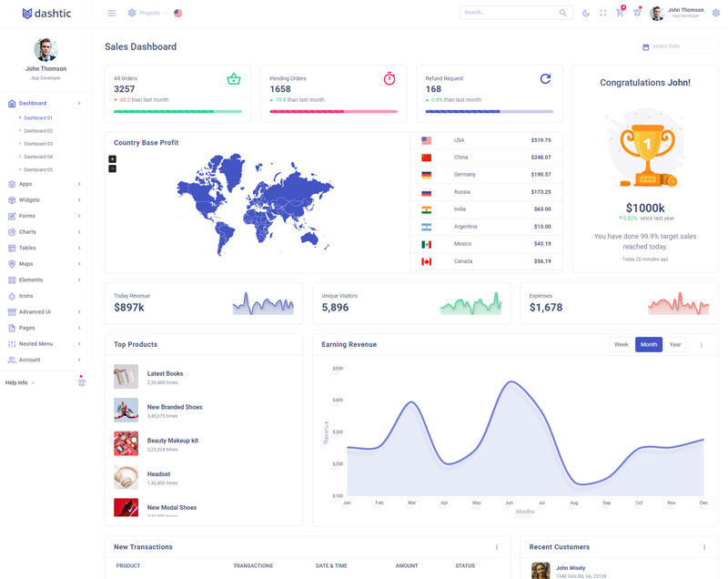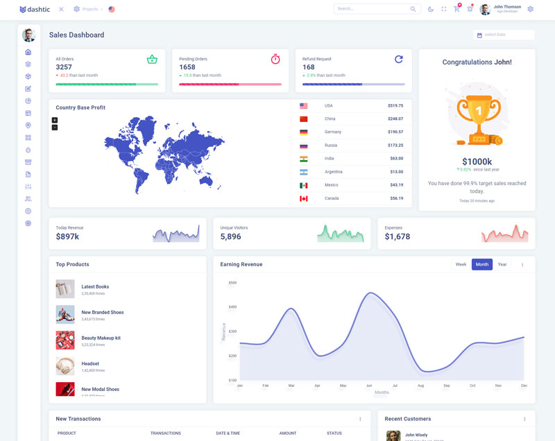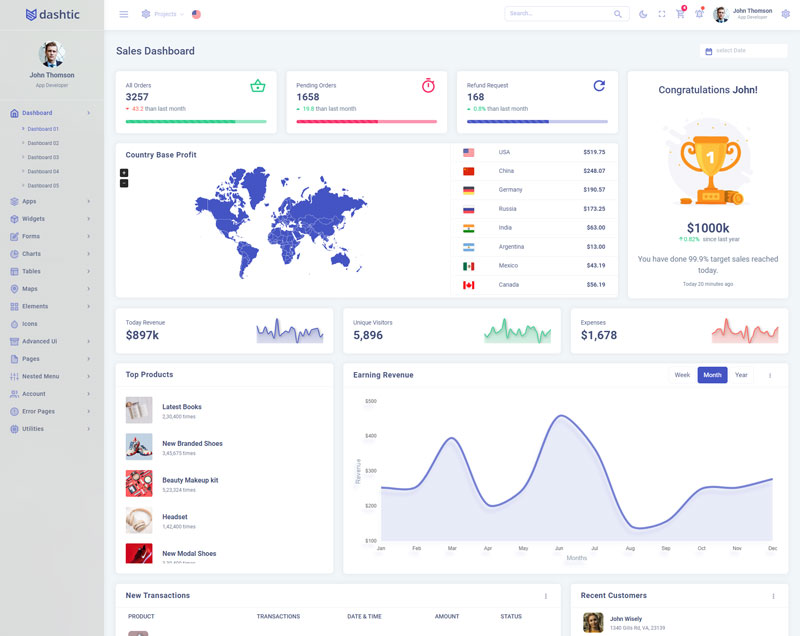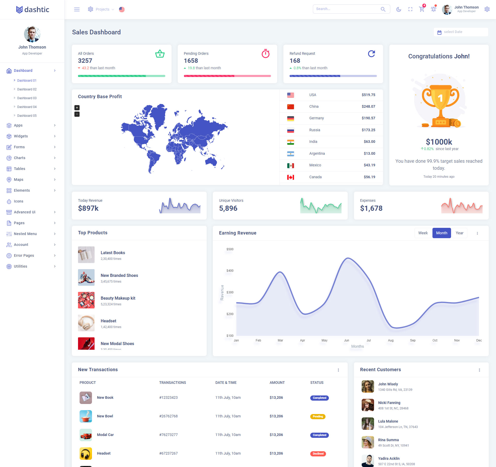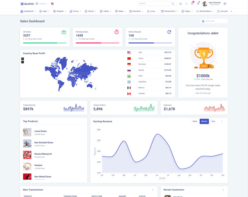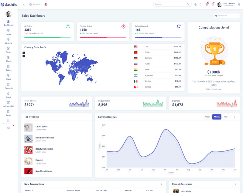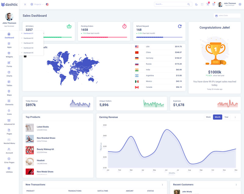 Explore the latest trending features incorporated into the Dashtic Admin template, showcasing how we have enhanced and designed our template. When it comes to design, we always keep a close watch on the most trending features.
