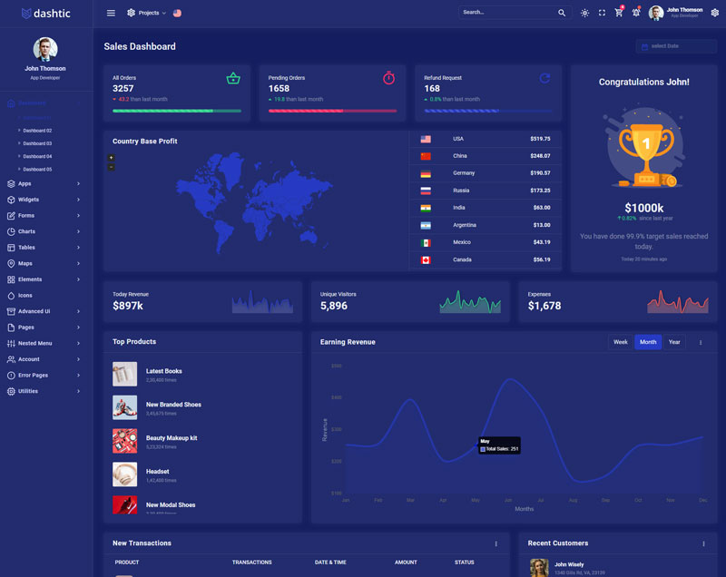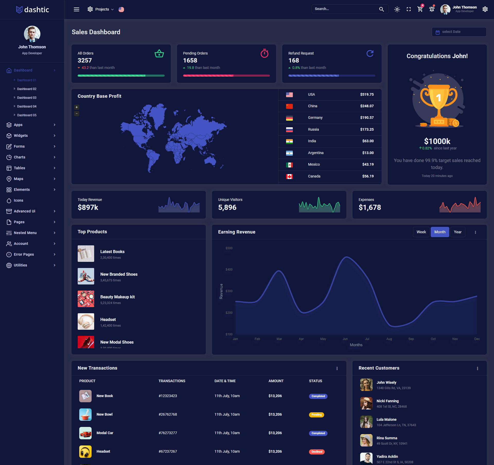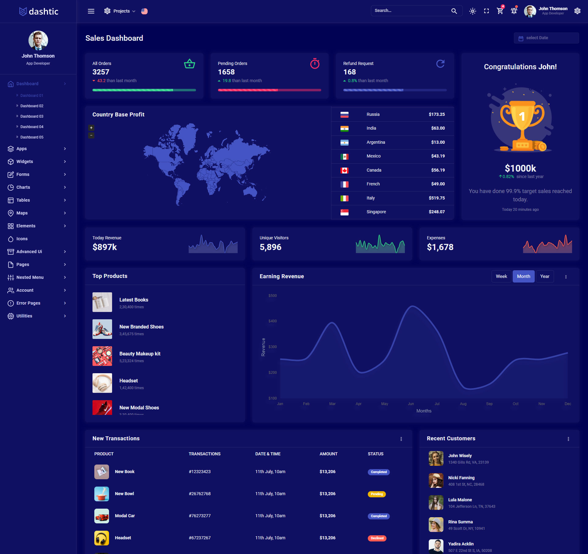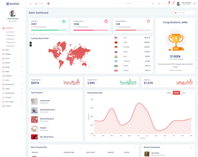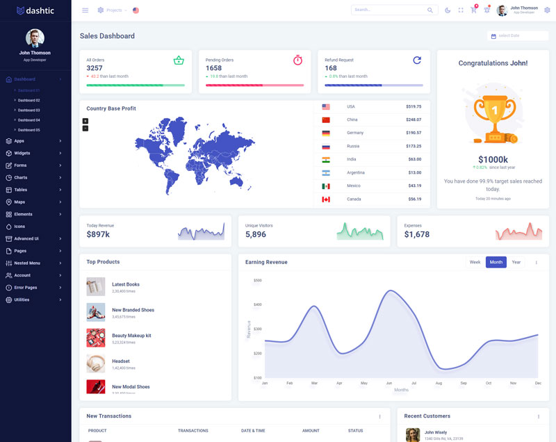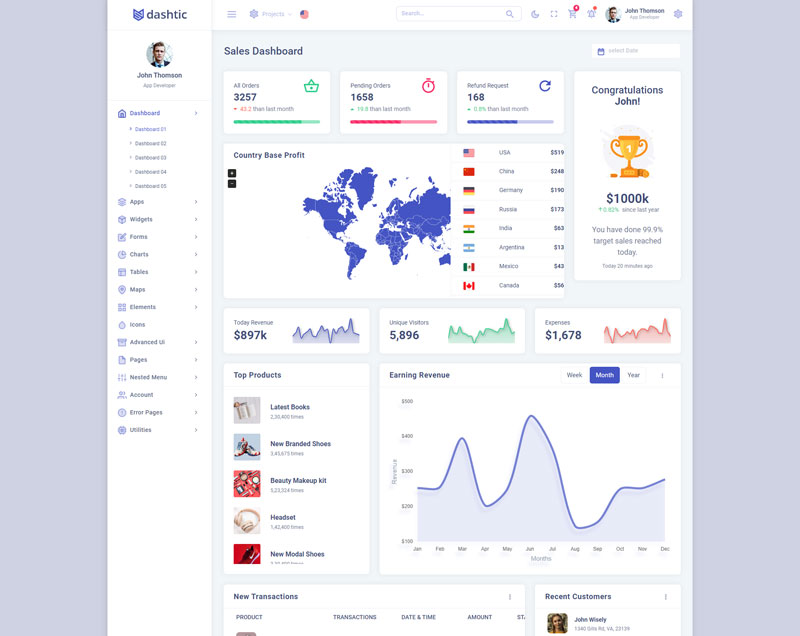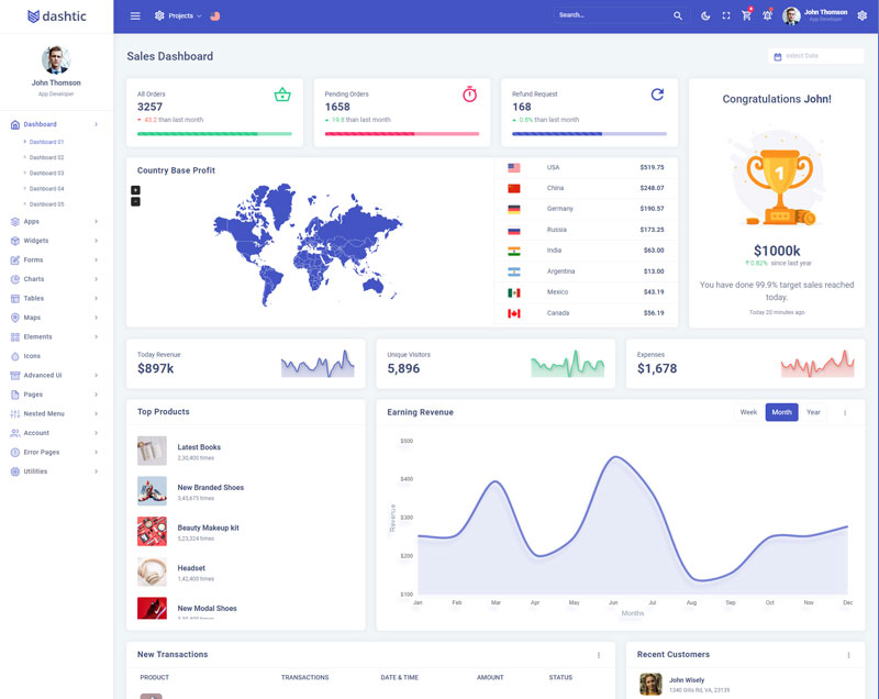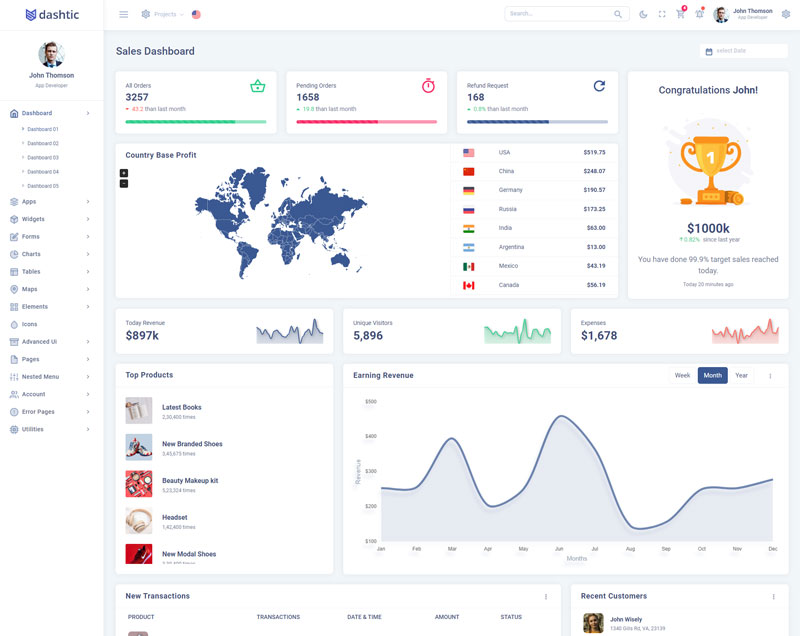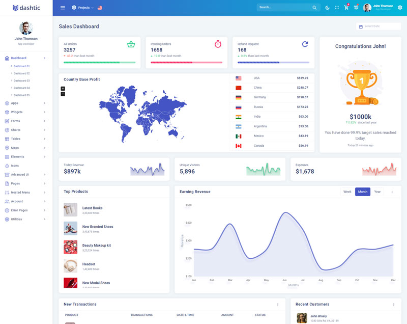 Explore the latest trending features incorporated into the Dashtic Admin template, showcasing how we have enhanced and designed our template. When it comes to design, we always keep a close watch on the most trending features.