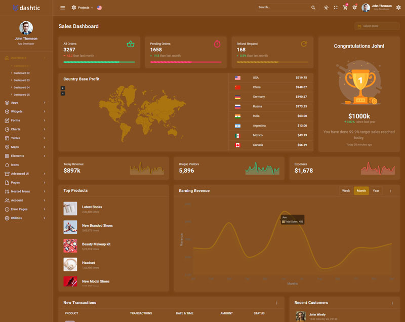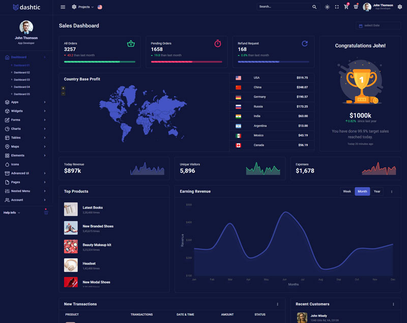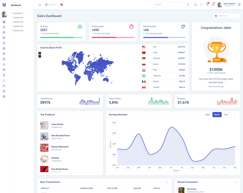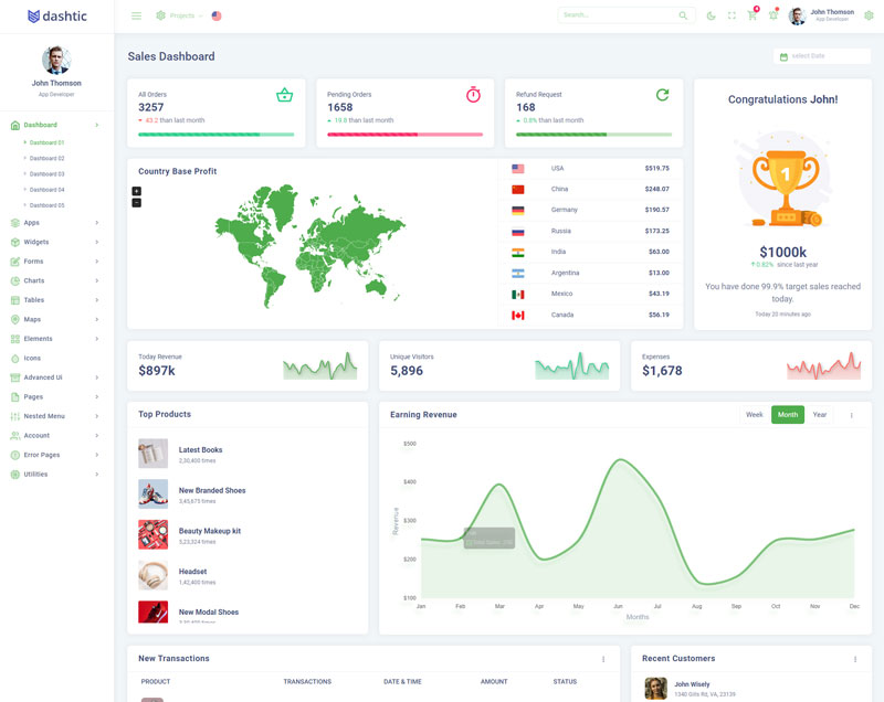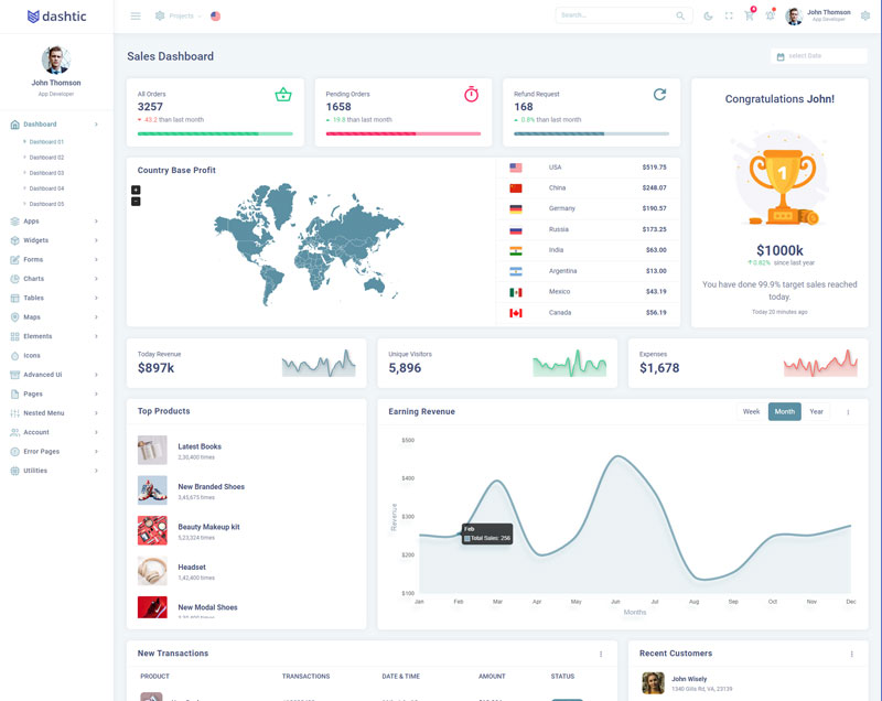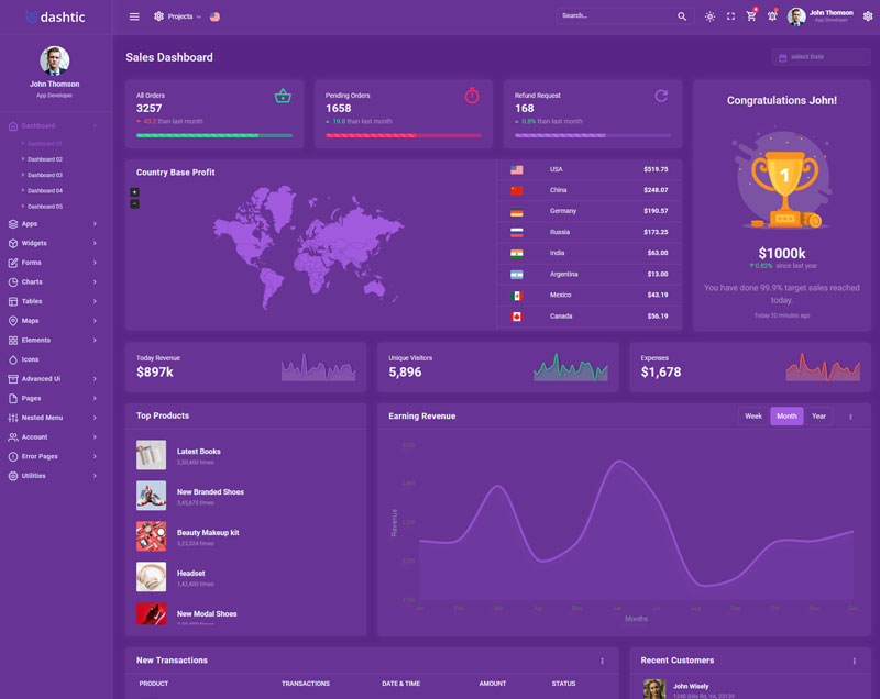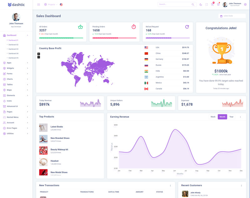 The Dashtic Dashboard Template comes with a wealth of ready-to-use features, saving developers significant time with its array of pre-built functionalities.