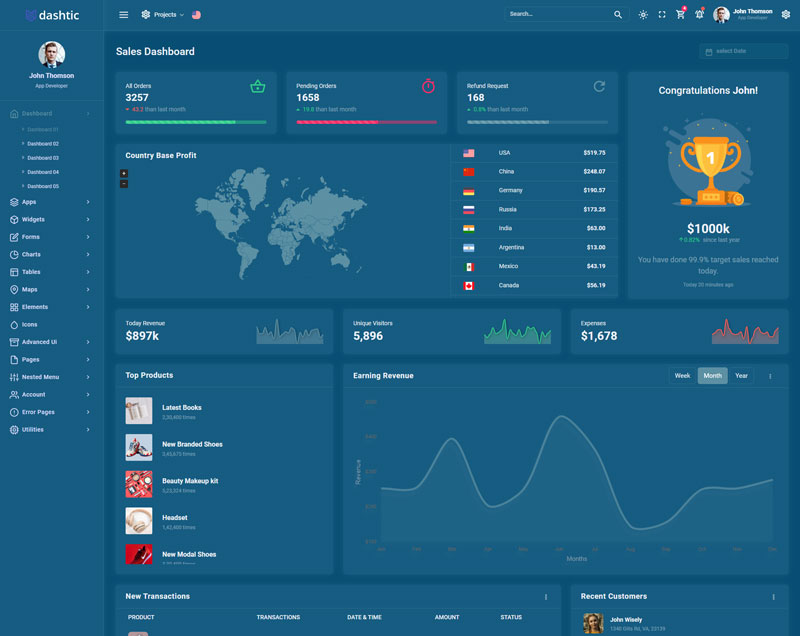 Take a look at the numerous versions we've integrated into the Dashtic Angular Admin & Dashboard Template, where you can customize it in countless ways.