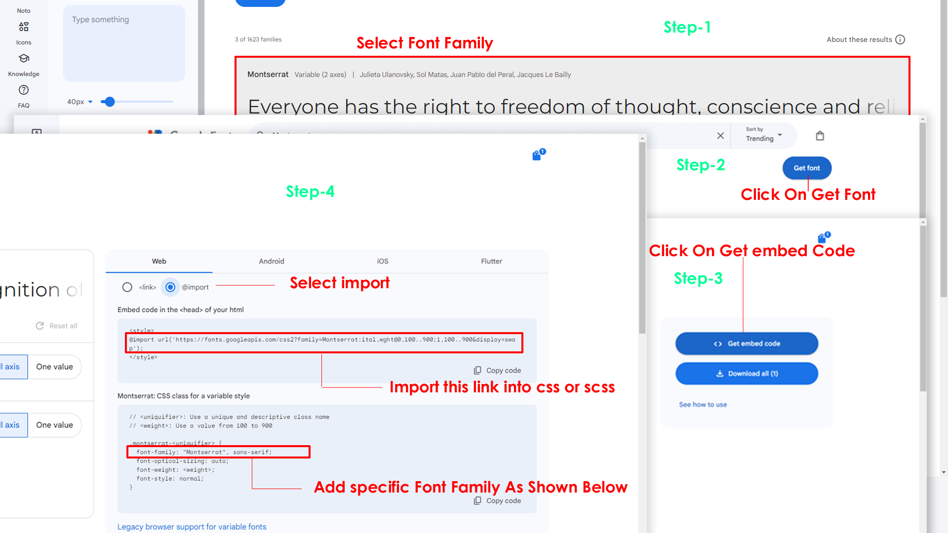And add the Your Selected font-family in _variables.scss(src/assets/scss/_variables.scss)