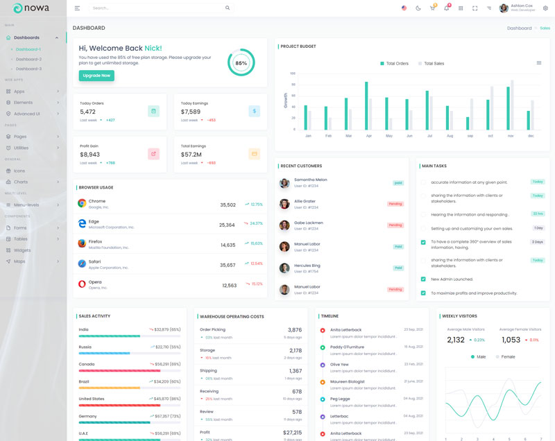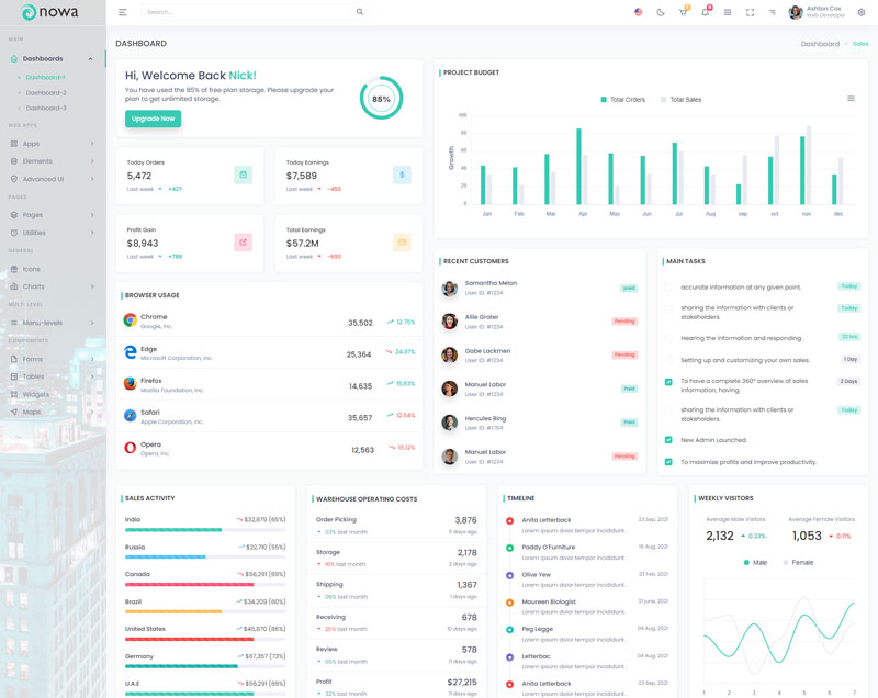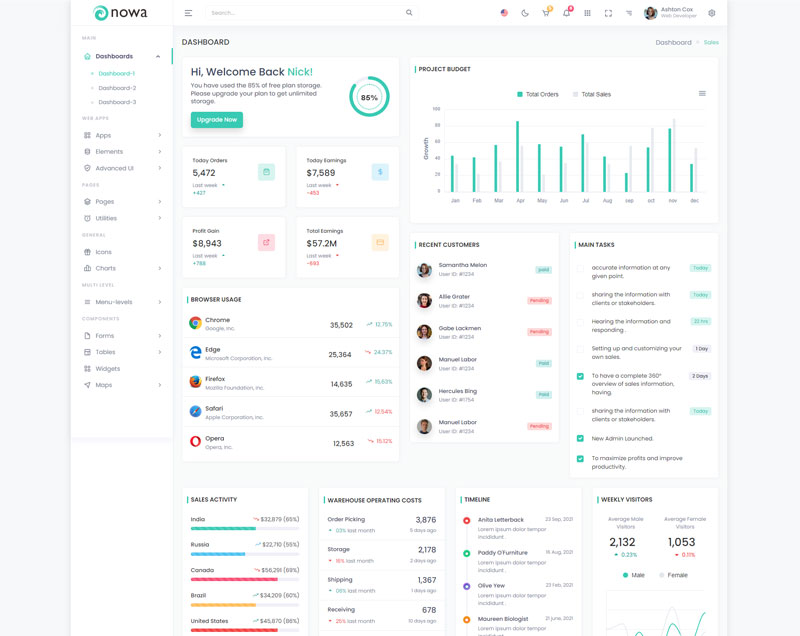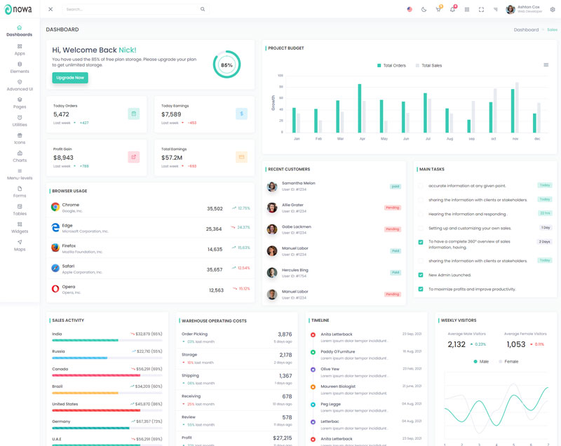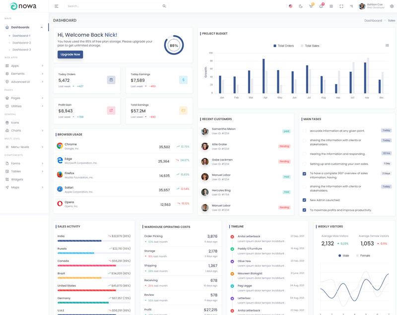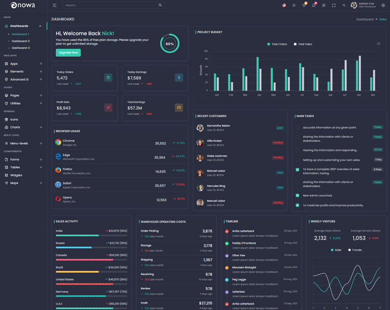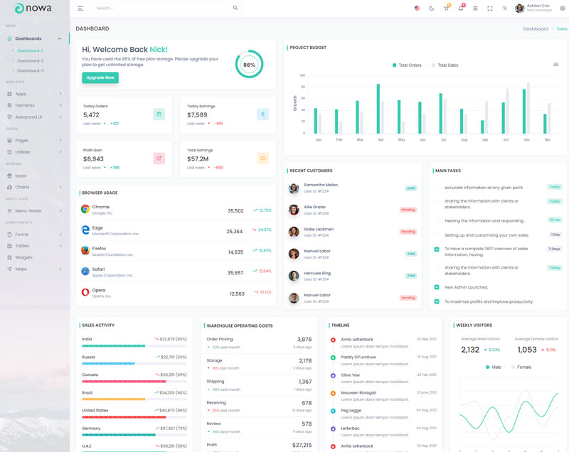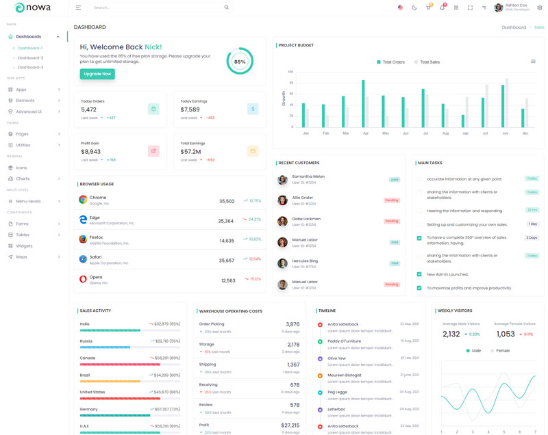 Explore the latest trending features incorporated into the Nowa Admin template, showcasing how we have enhanced and designed our template. When it comes to design, we always keep a close watch on the most trending features.