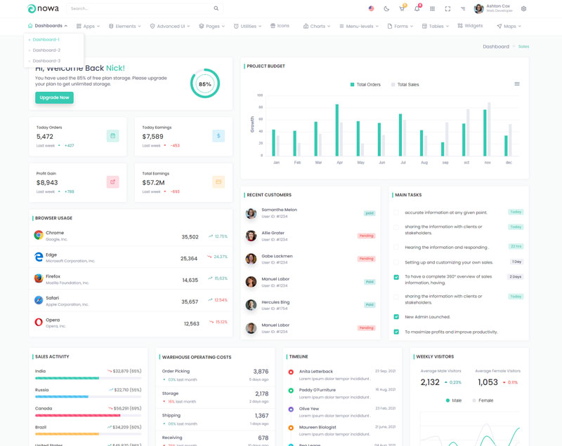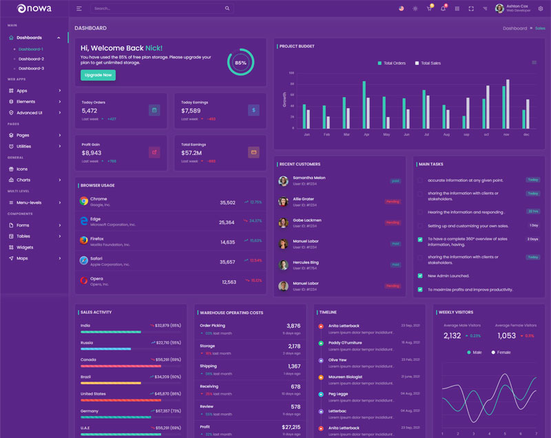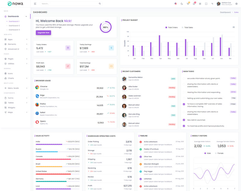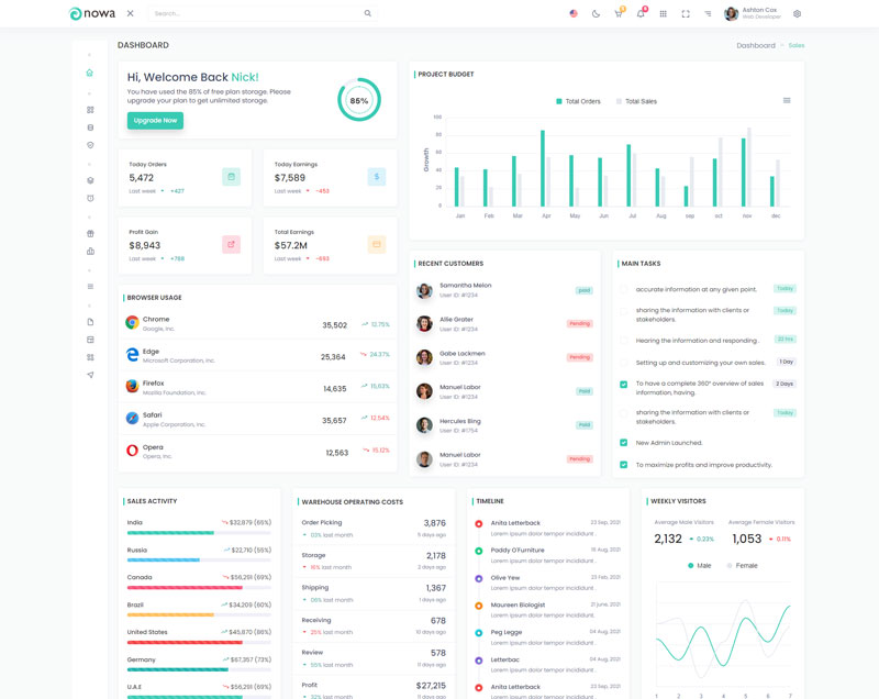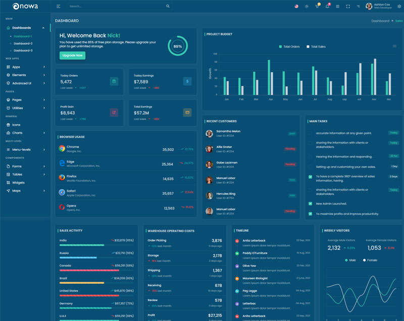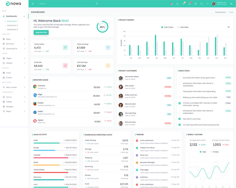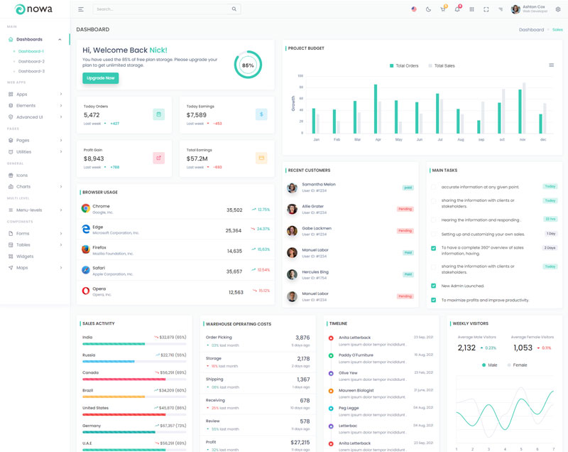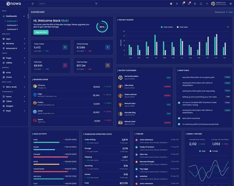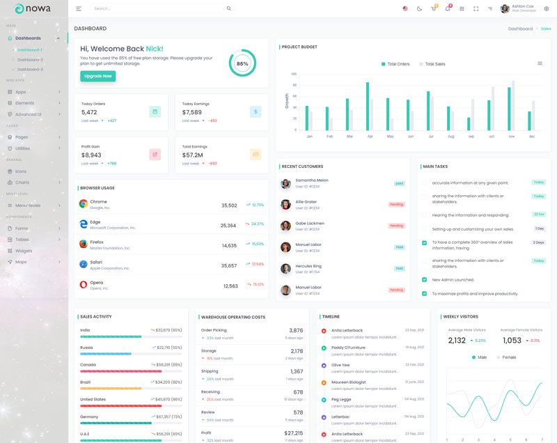 Explore the latest trending features incorporated into the Nowa Admin template, showcasing how we have enhanced and designed our template. When it comes to design, we always keep a close watch on the most trending features.