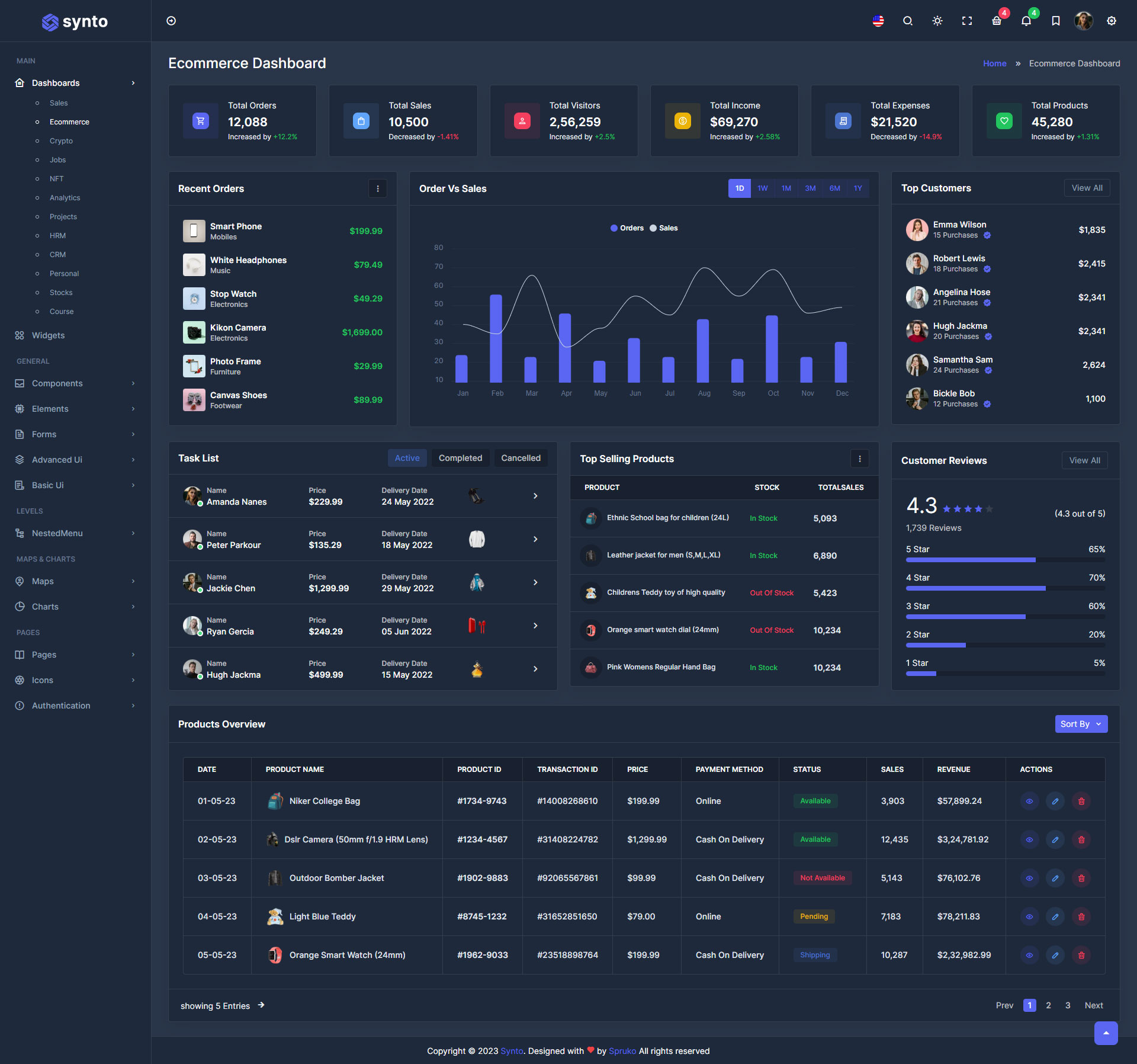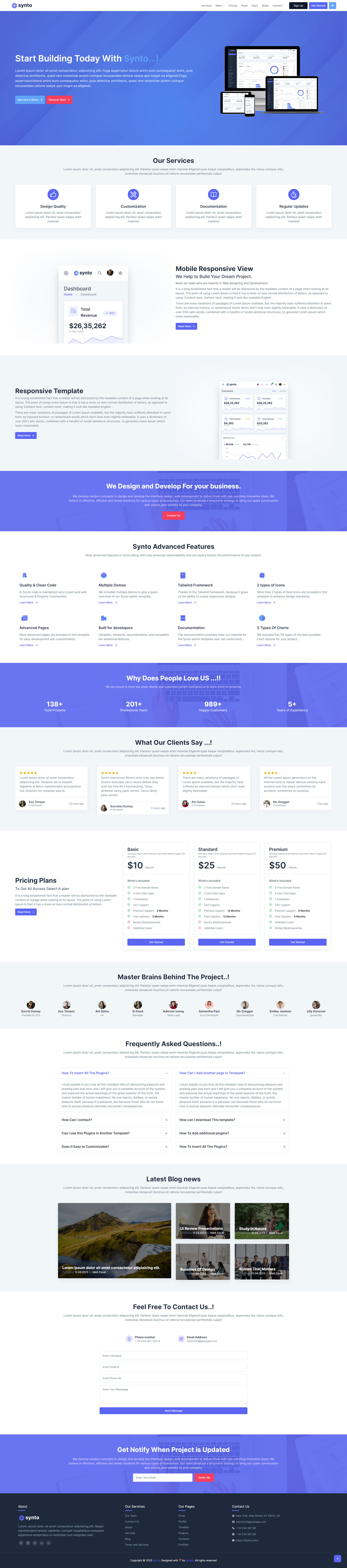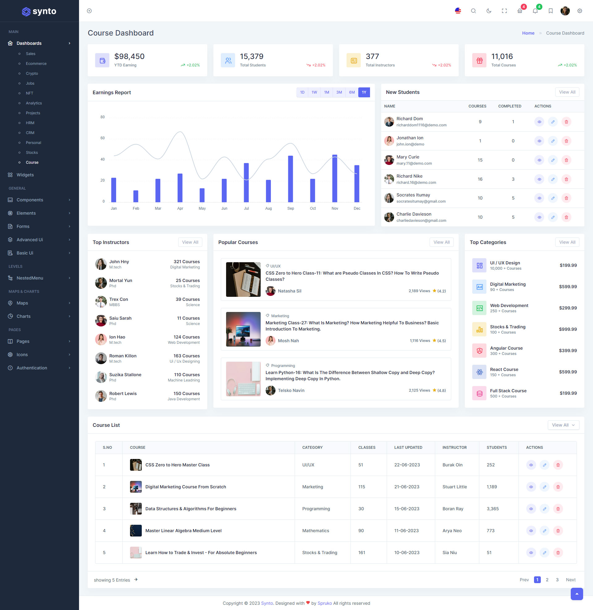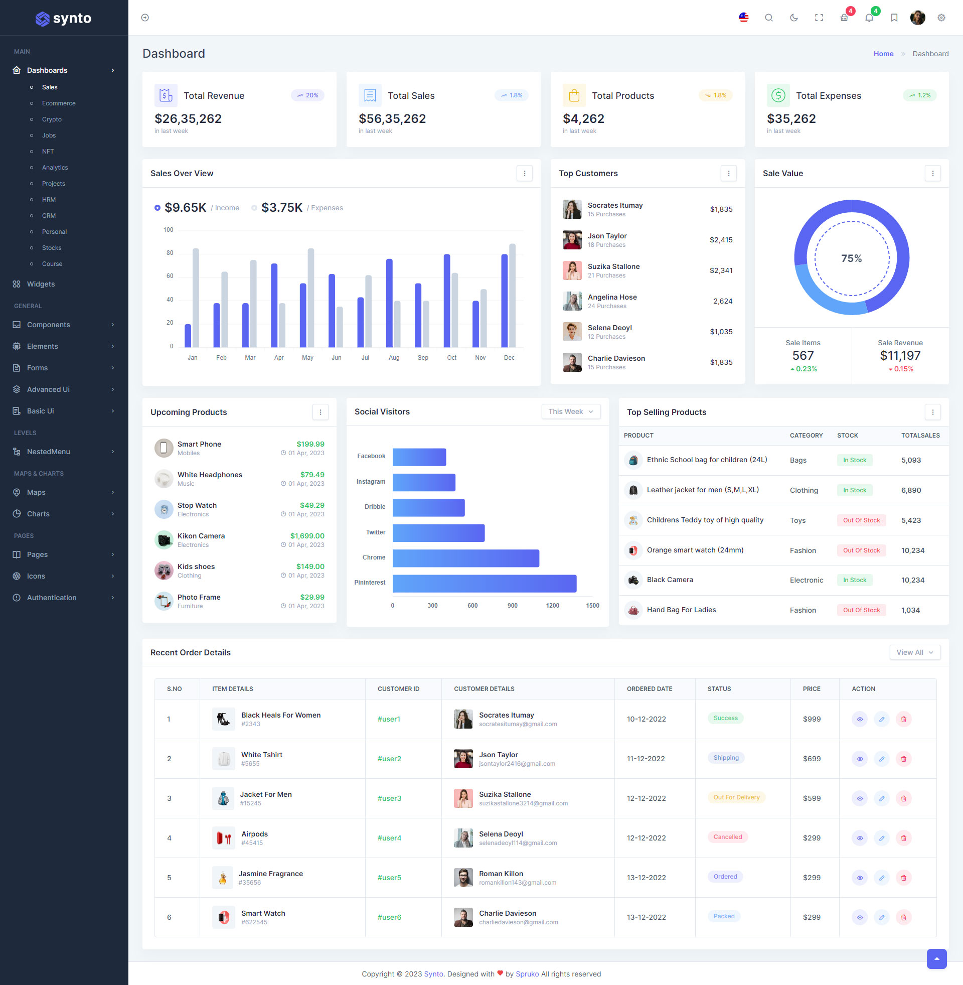 Synto admin template comes with ready to use features. It has lots of readymade features saves more time for developers.