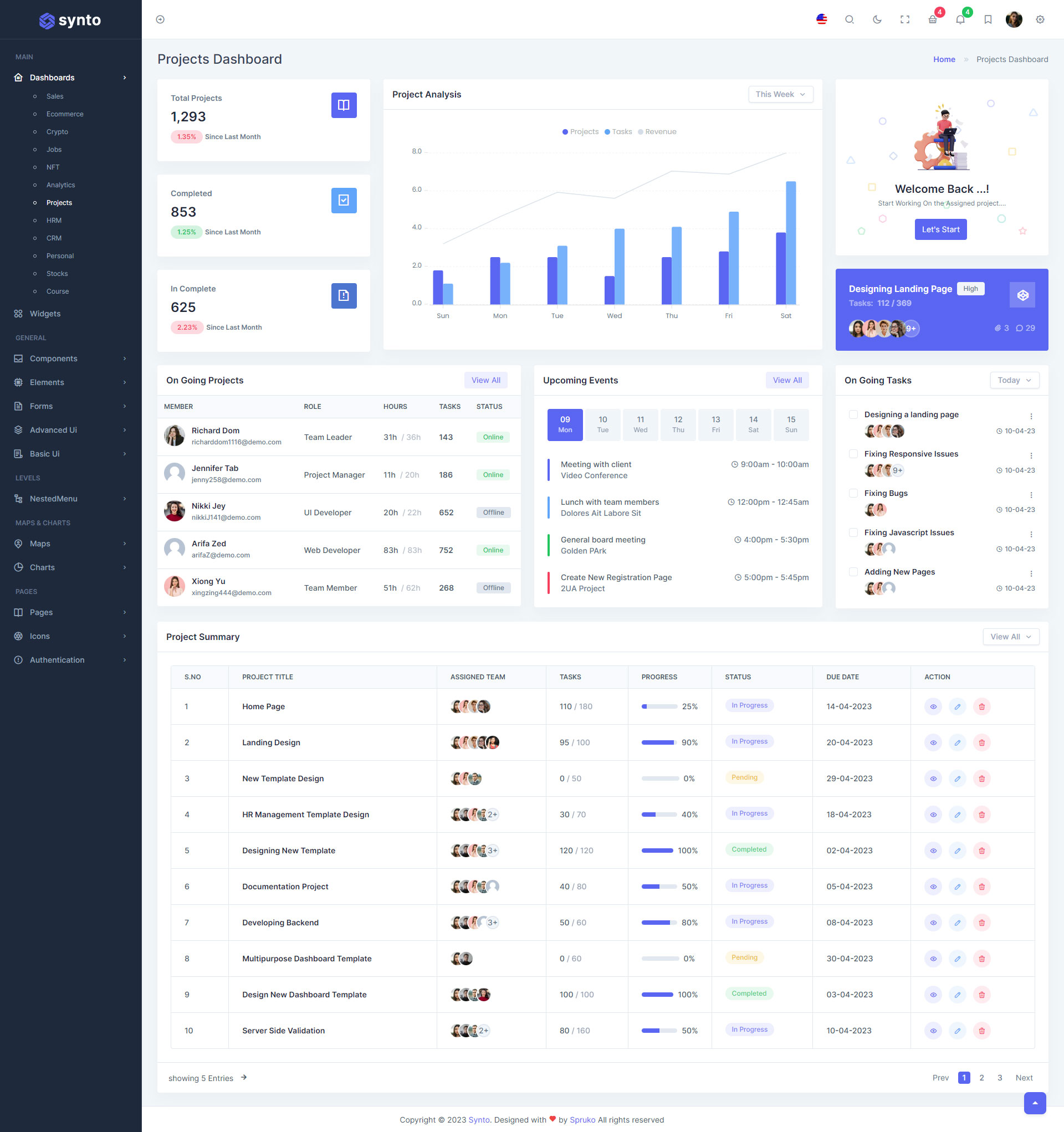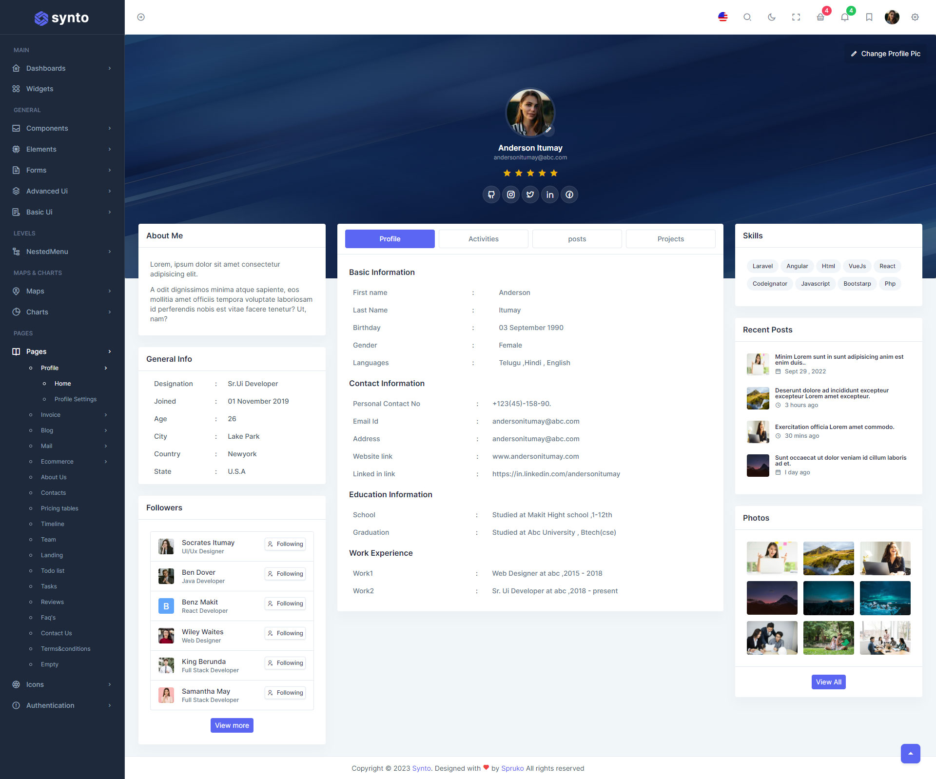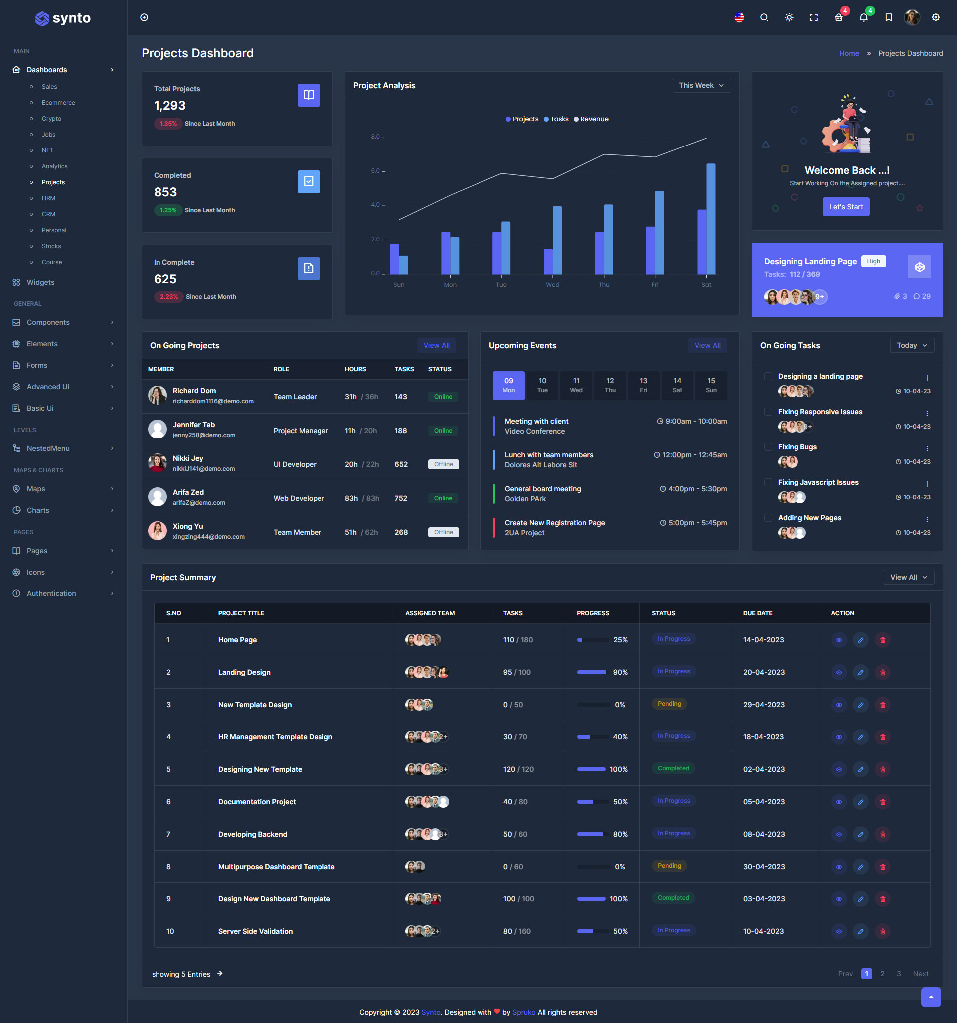 Synto admin template comes with ready to use features. It has lots of readymade features saves more time for developers.