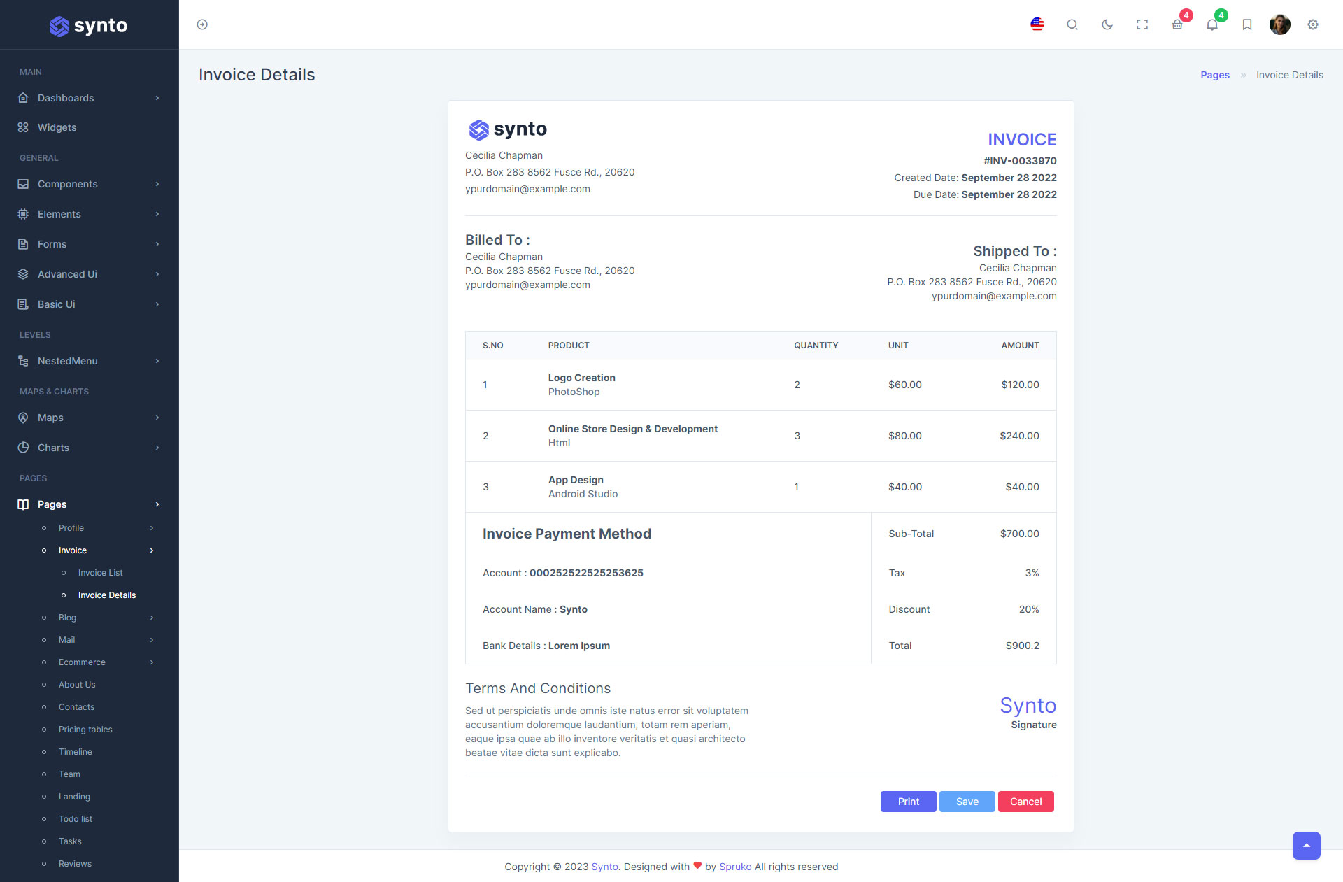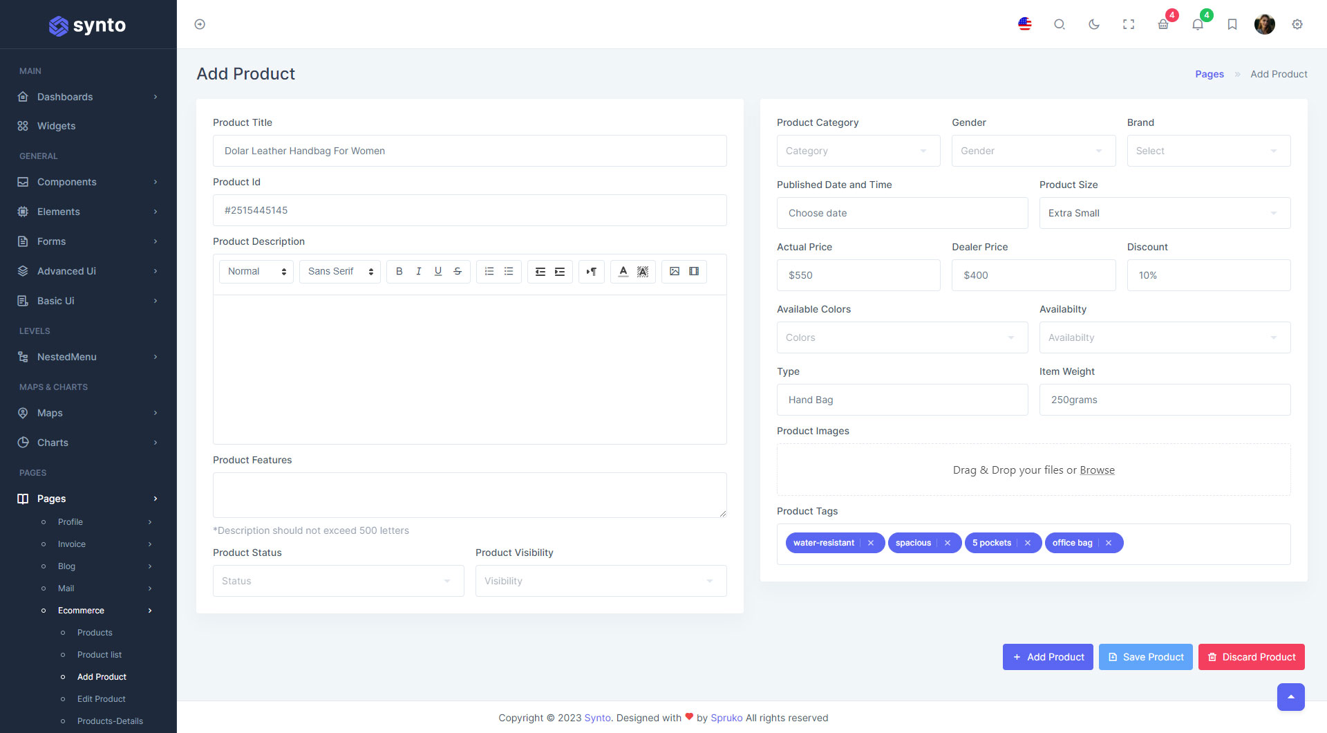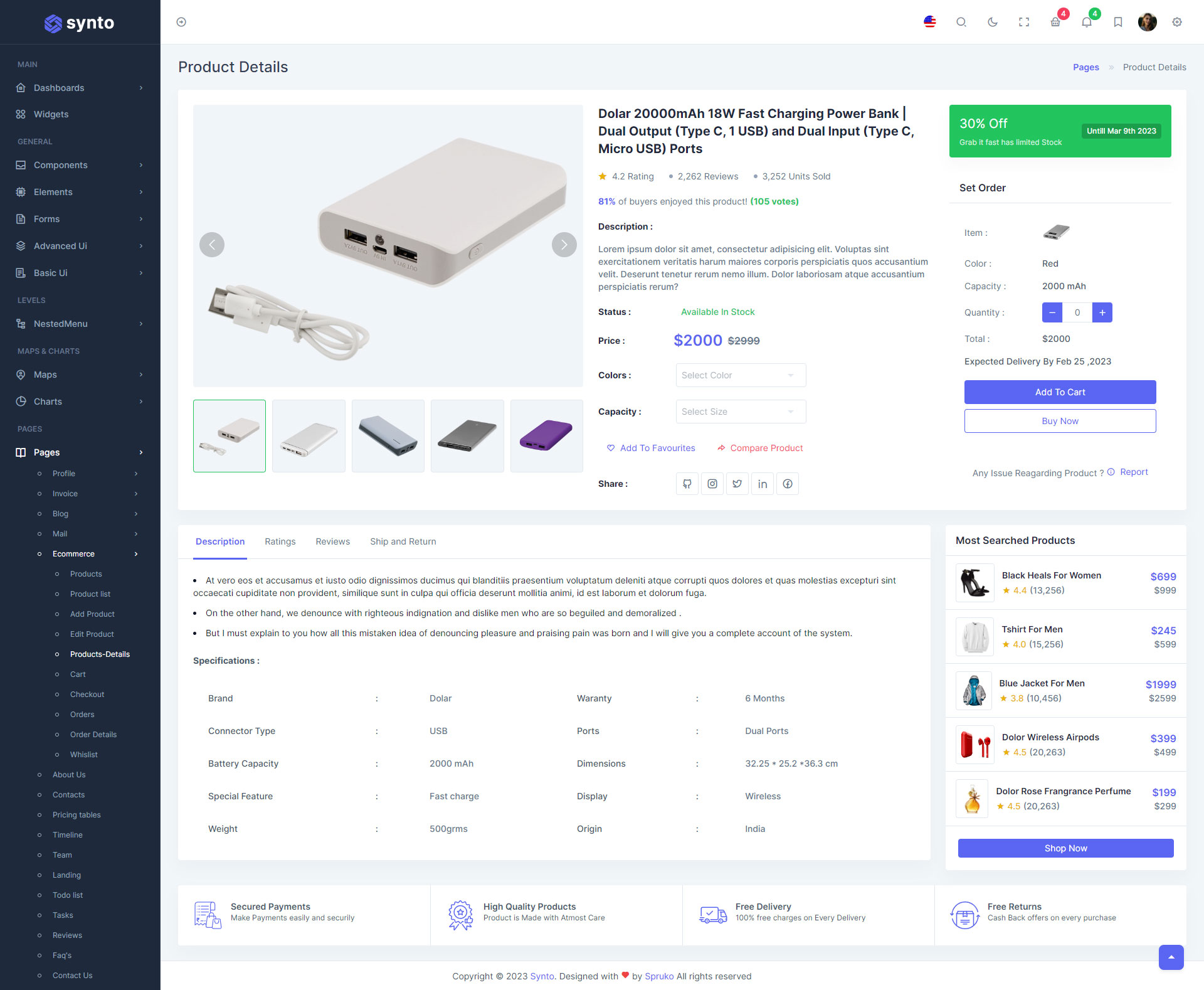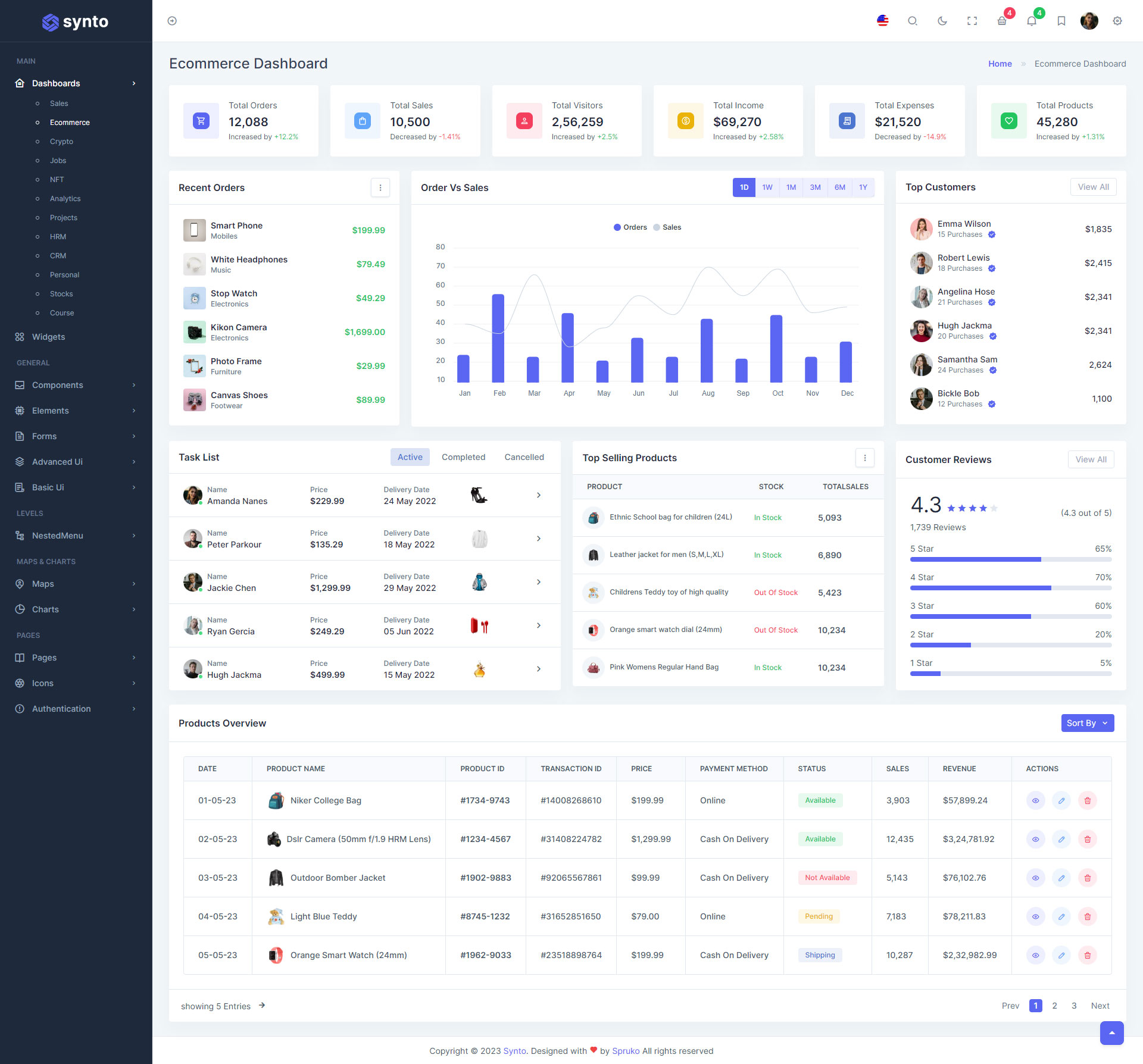 Synto admin template comes with ready to use features. It has lots of readymade features saves more time for developers.