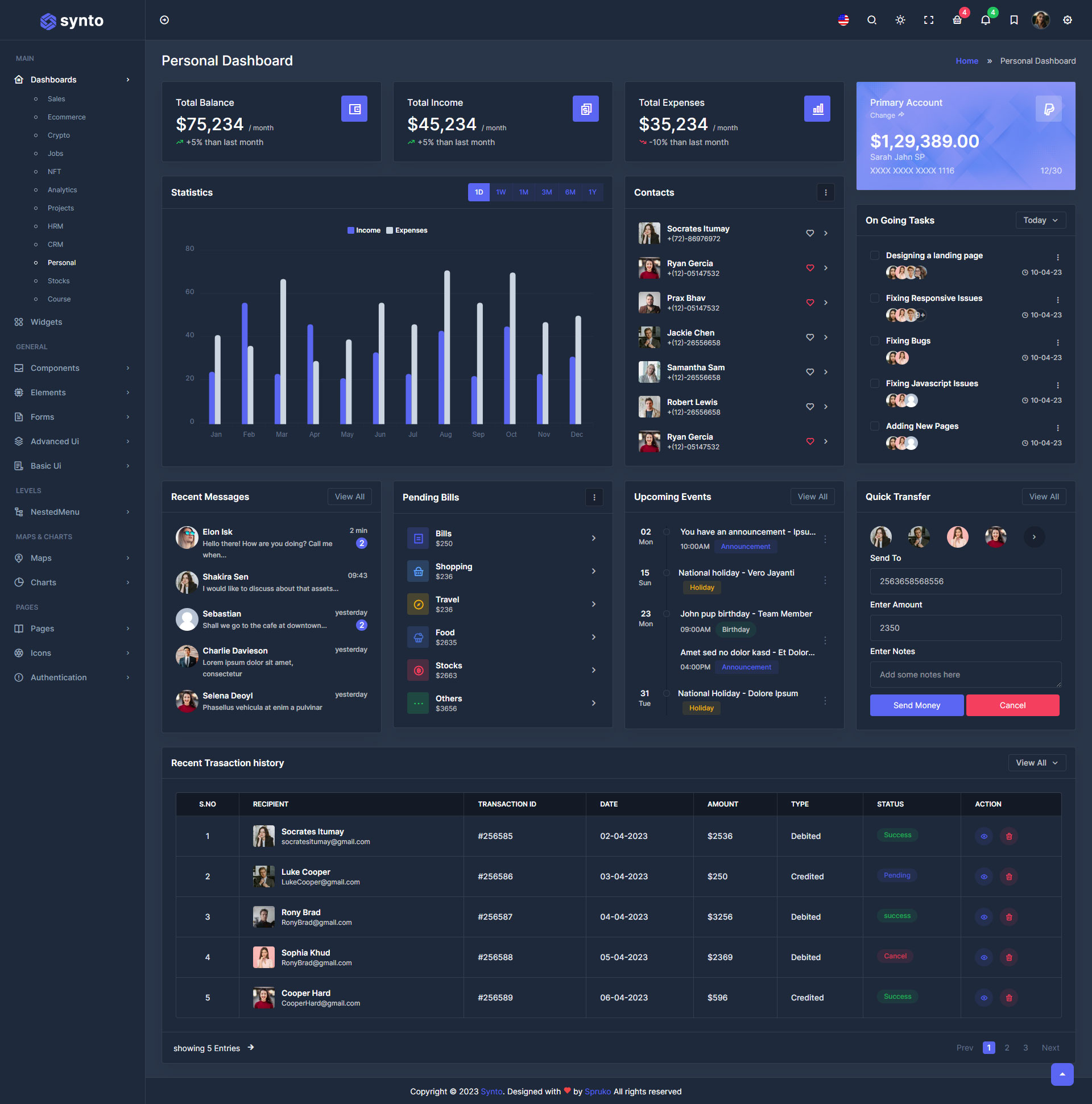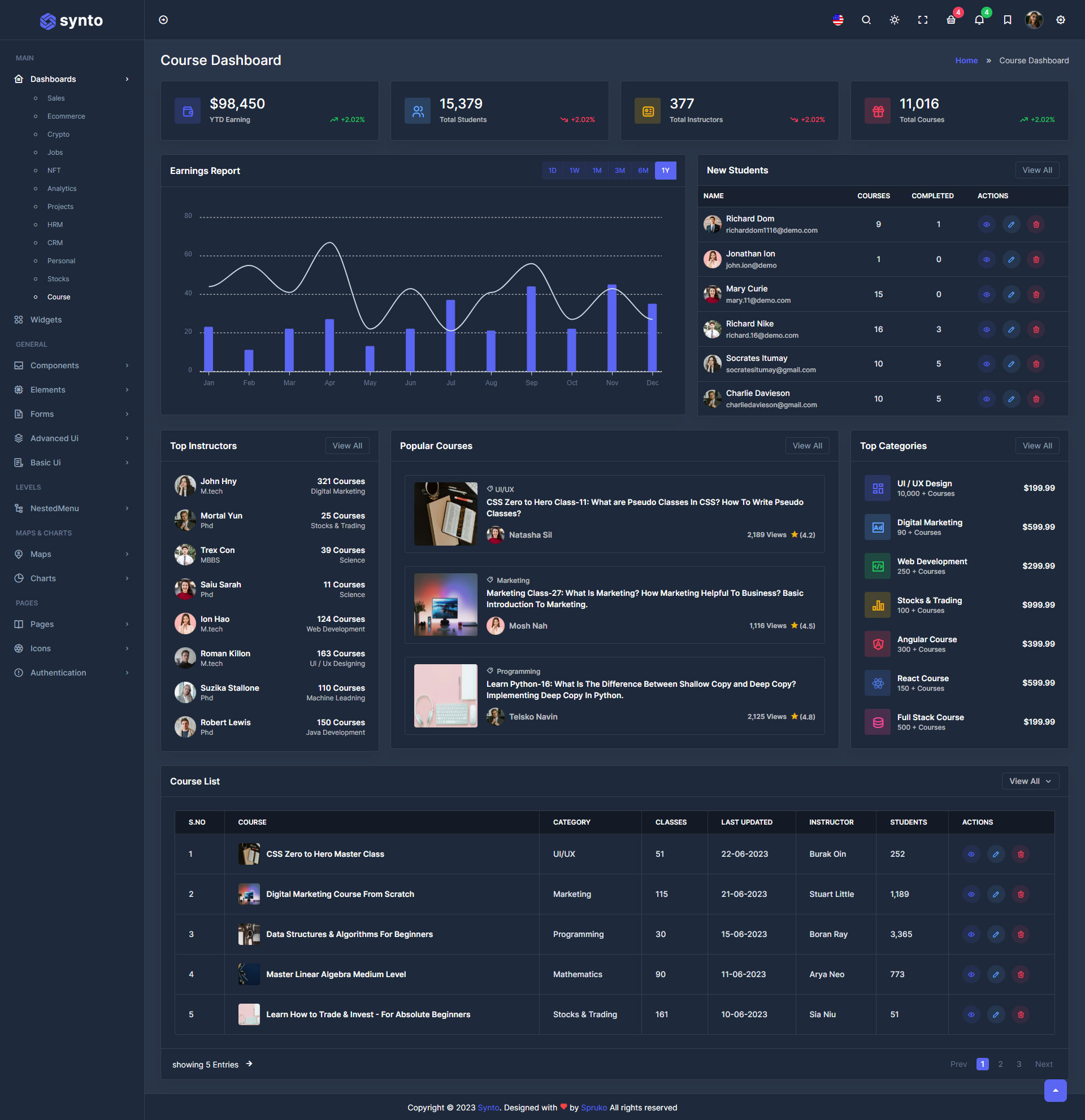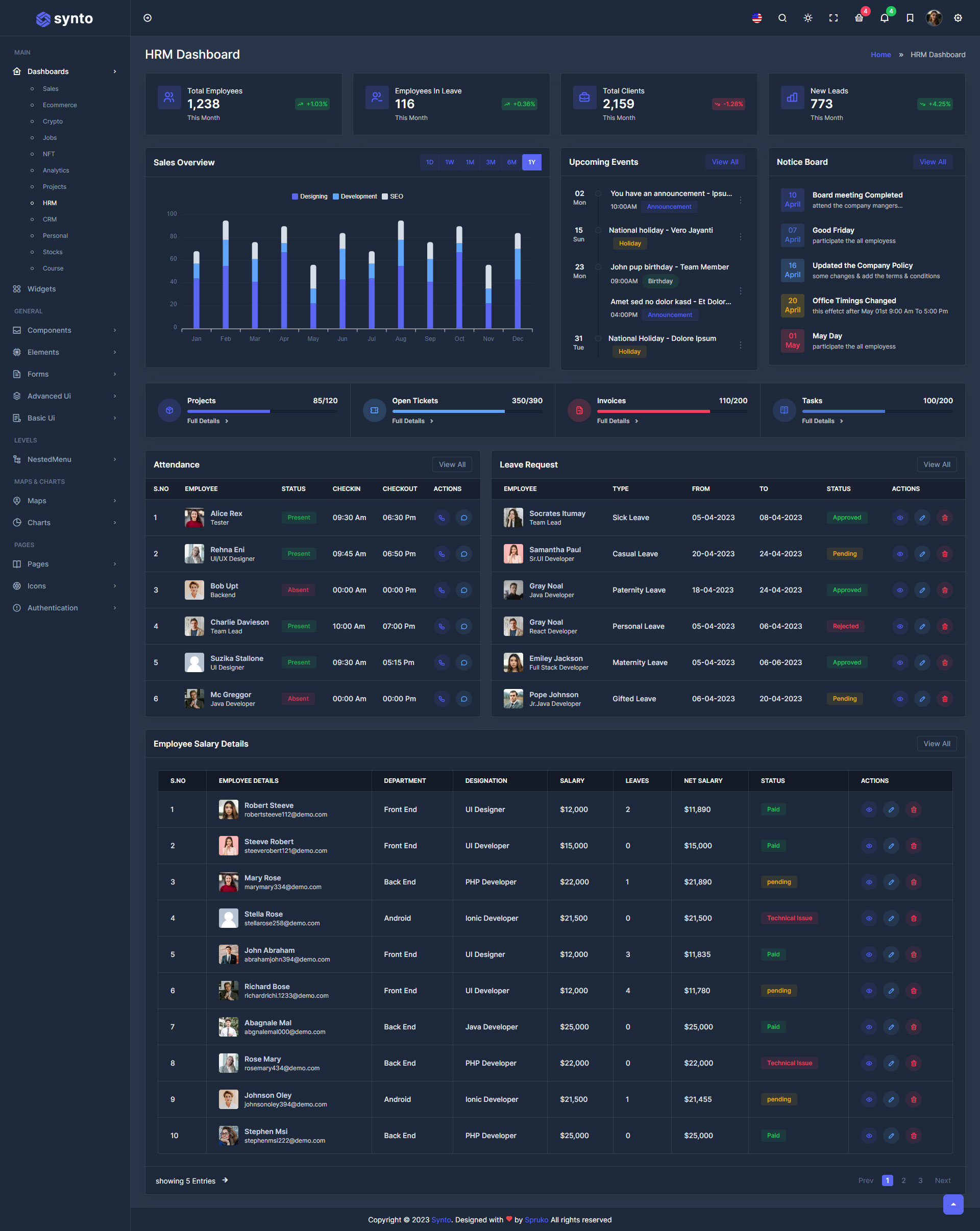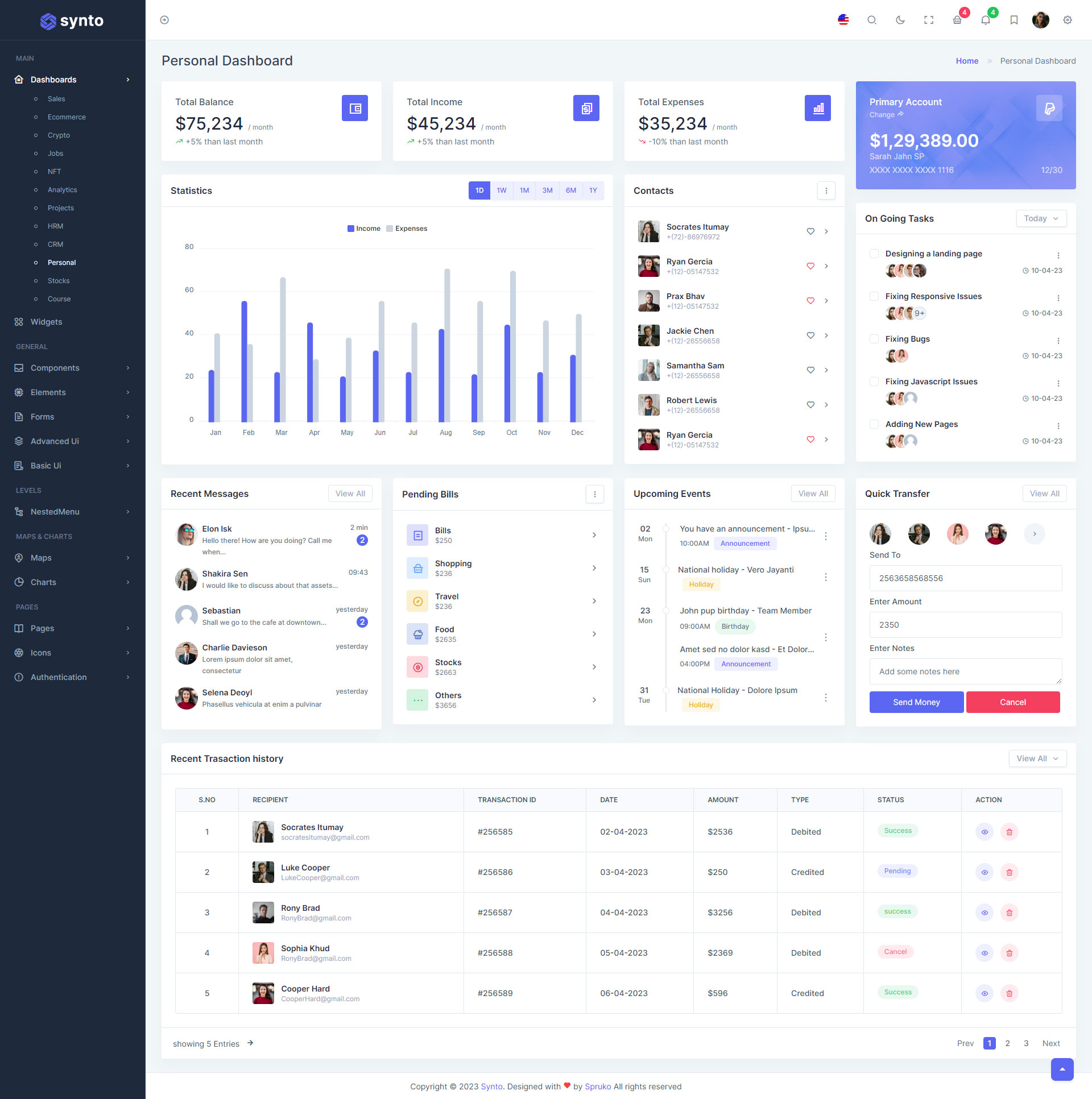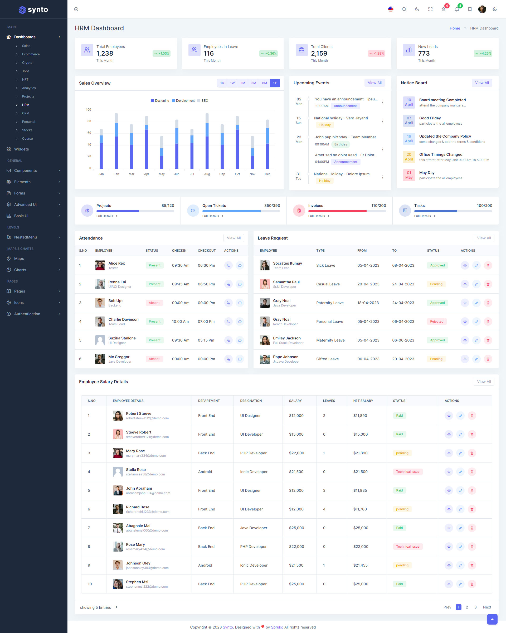 Check out these most trending features that are used in the Synto Admin template that shows how we improved and designed our template. When it came to designing, we keep an eye on the most trending feature..