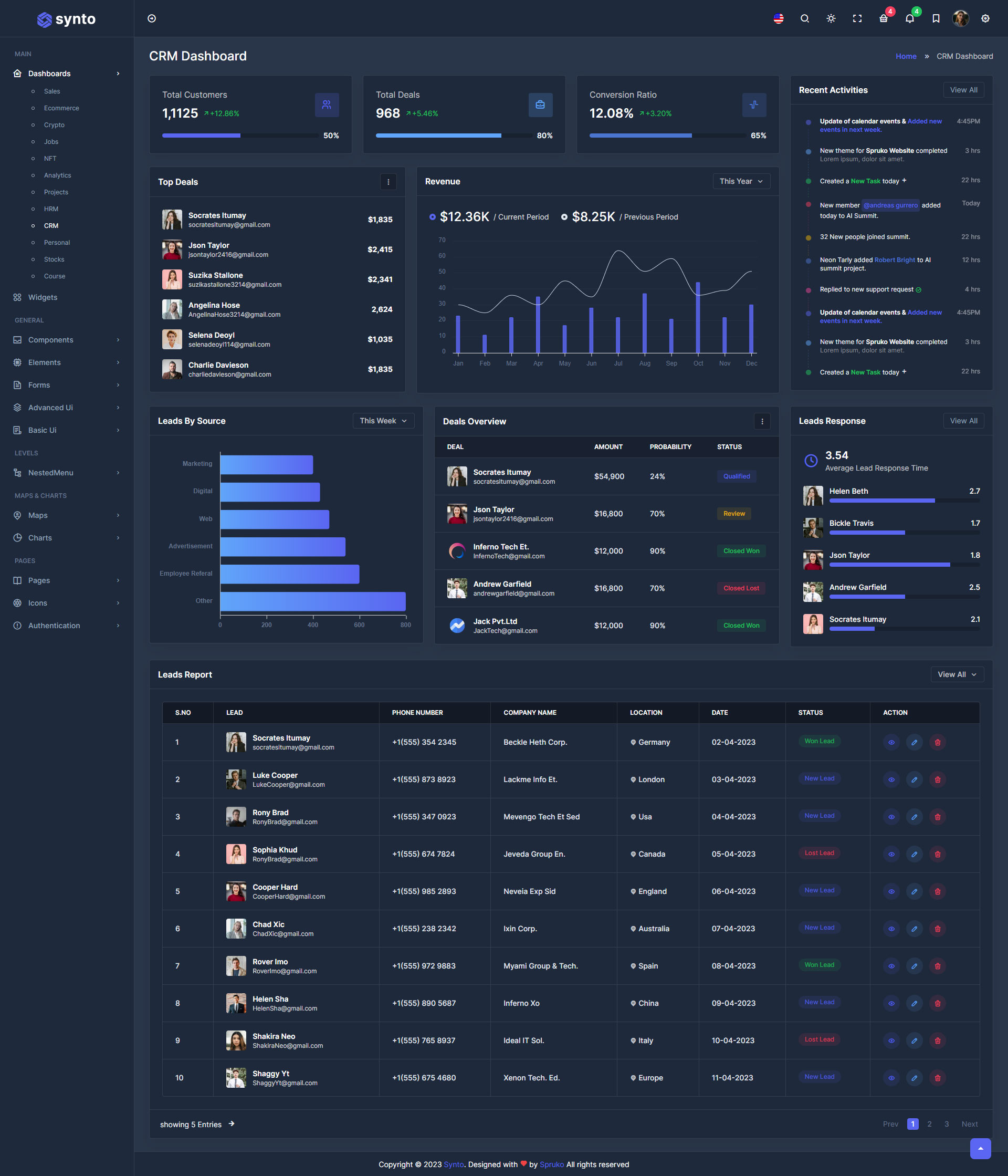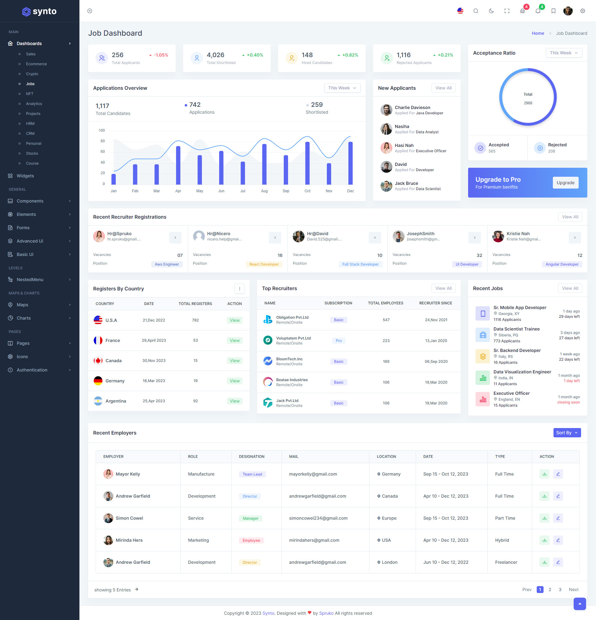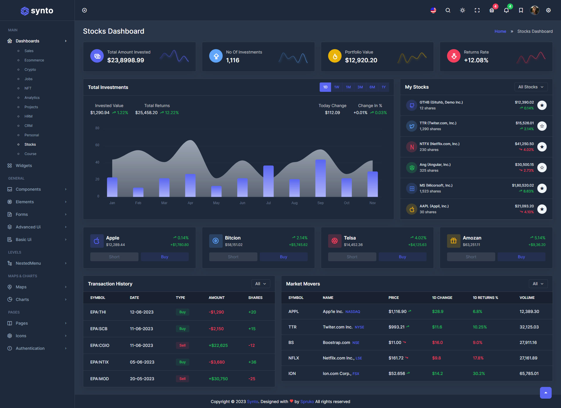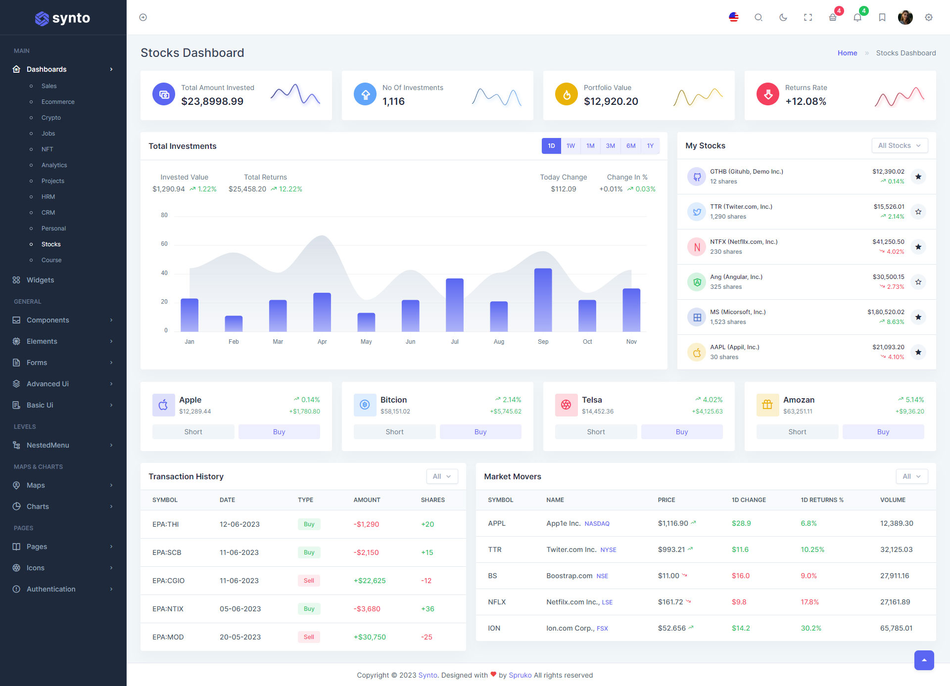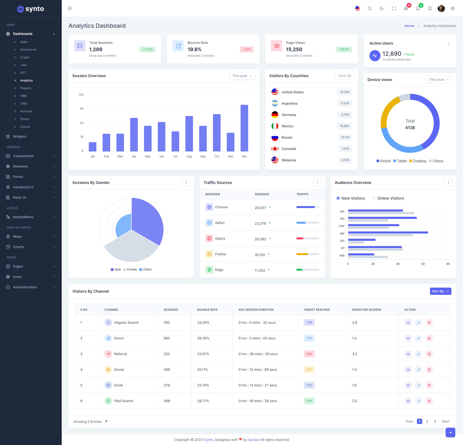 Here, Synto 12 beautiful dashboards and comes with different types of themes. So that users can choose their best theme and customize the Synto - Tailwind Angular Admin Template according to their choice.