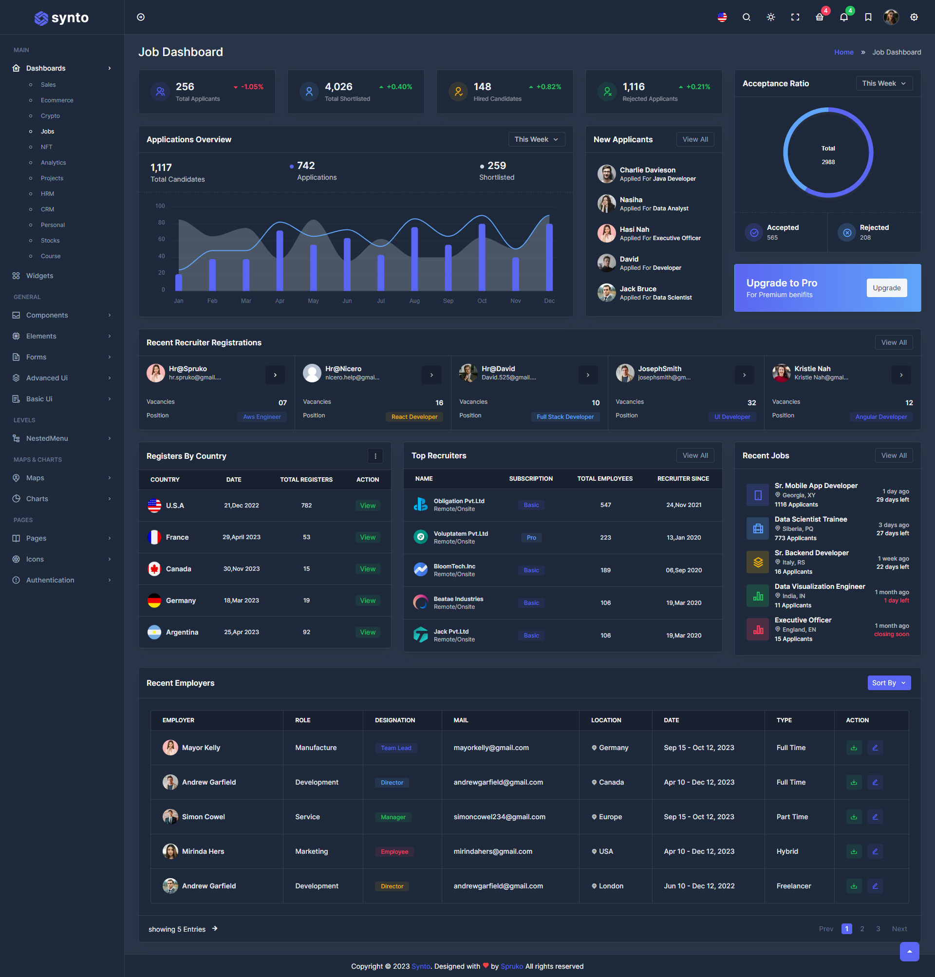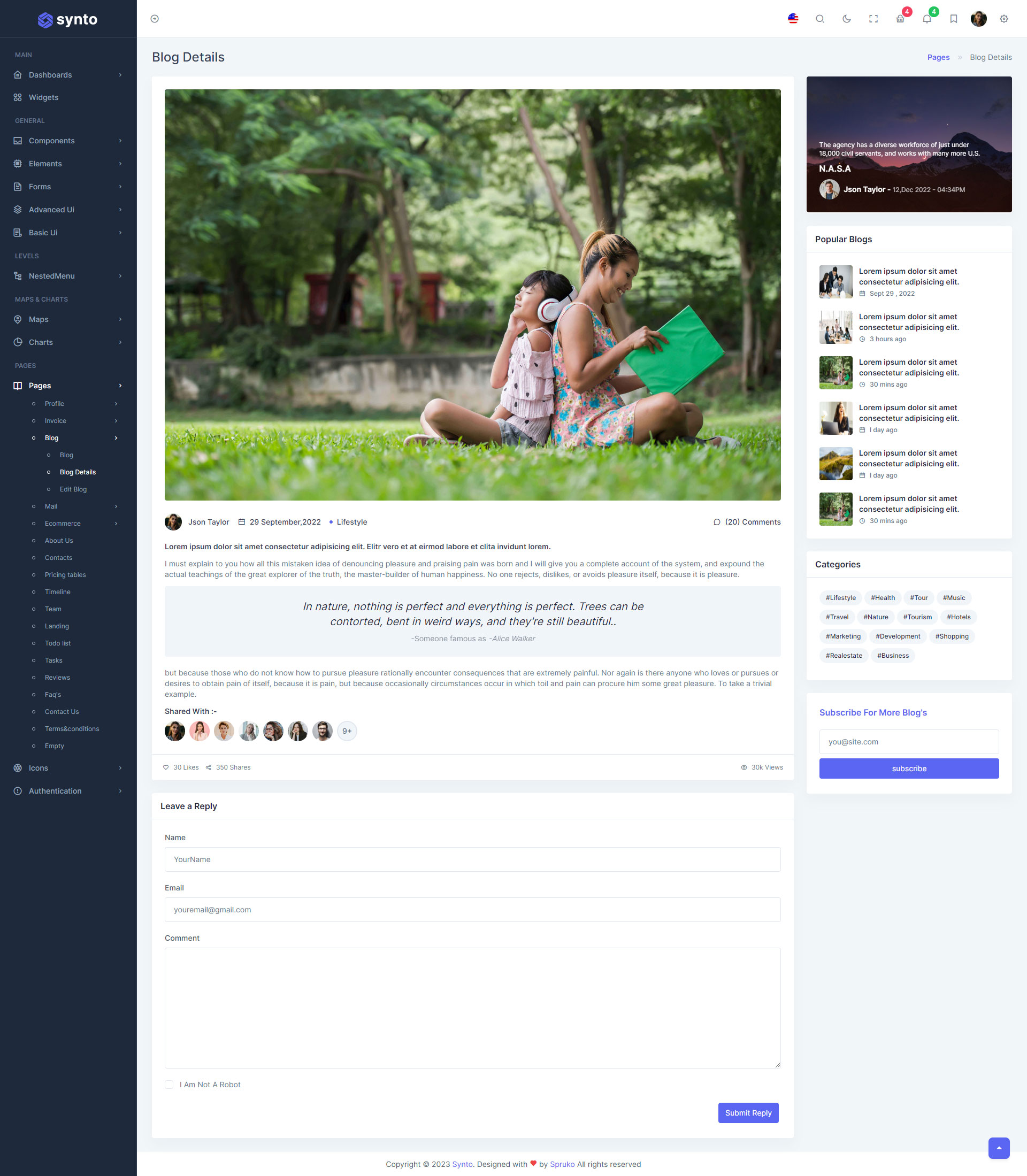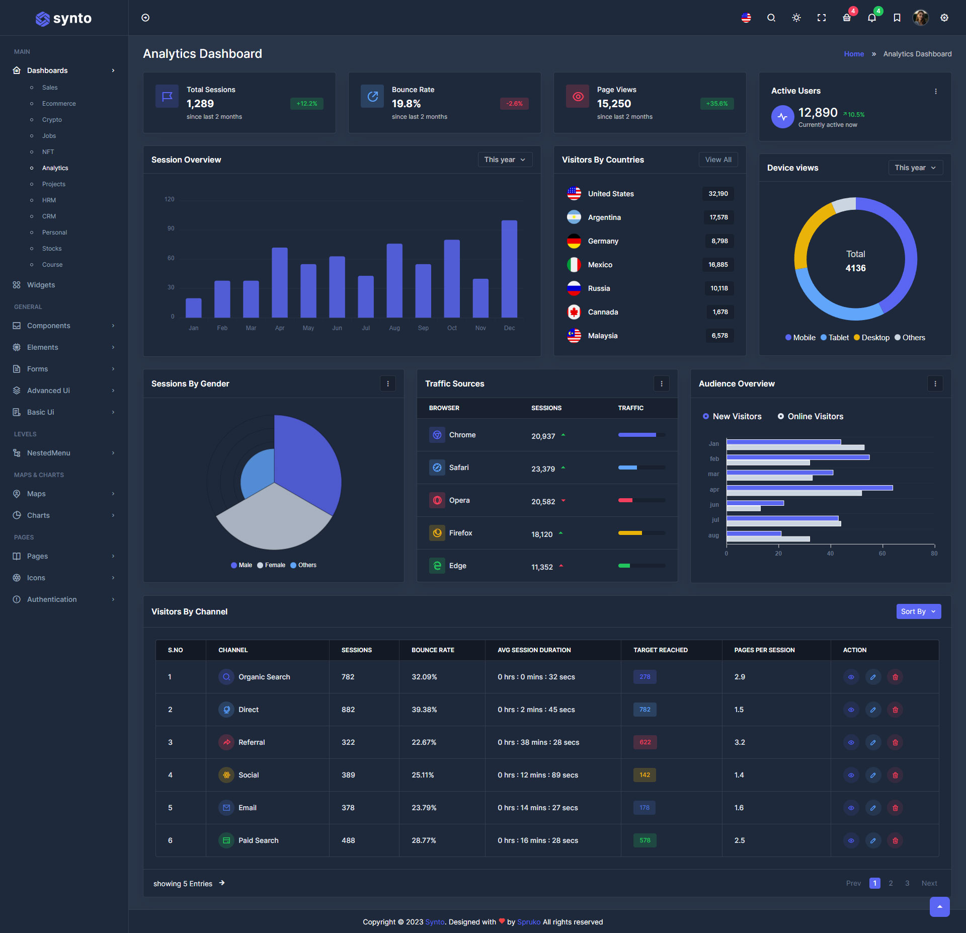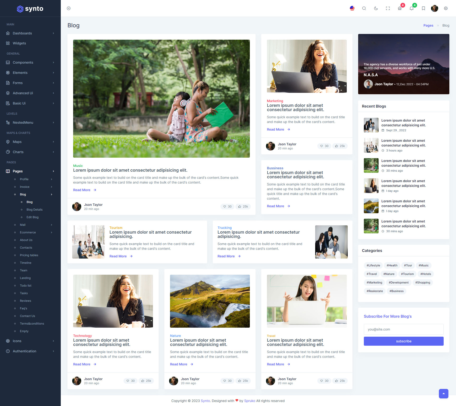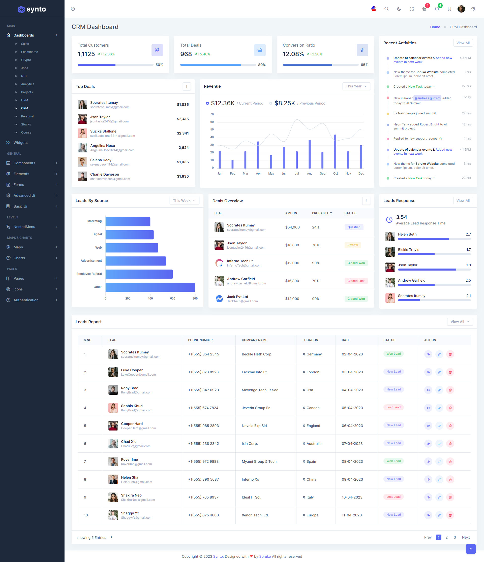 Here, Synto 12 beautiful dashboards and comes with different types of themes. So that users can choose their best theme and customize the Synto - Tailwind Angular Admin Template according to their choice.