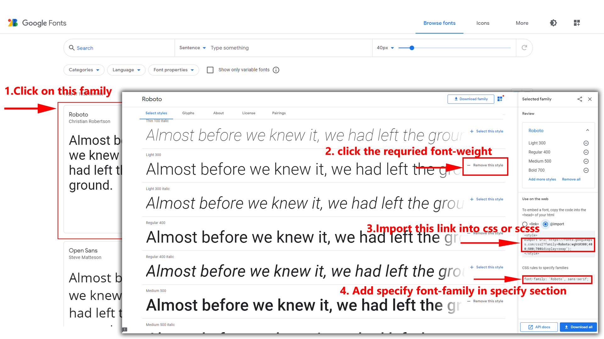 if you want to change another font-family Go to the site Google Fonts And Select One font Family and import in to styles.scss file