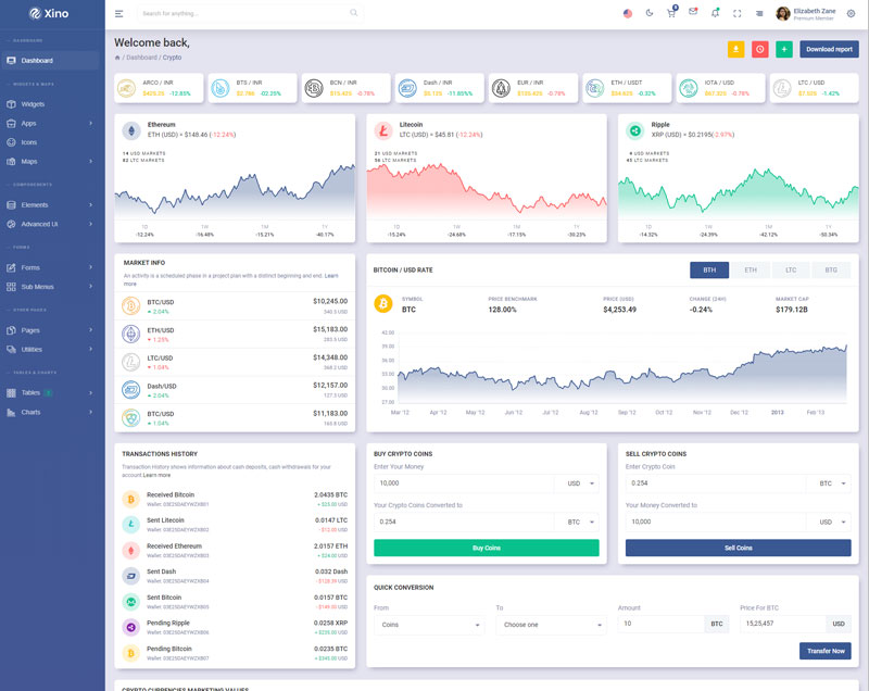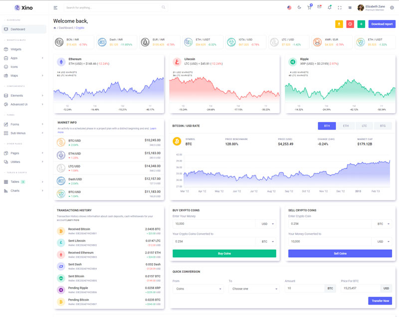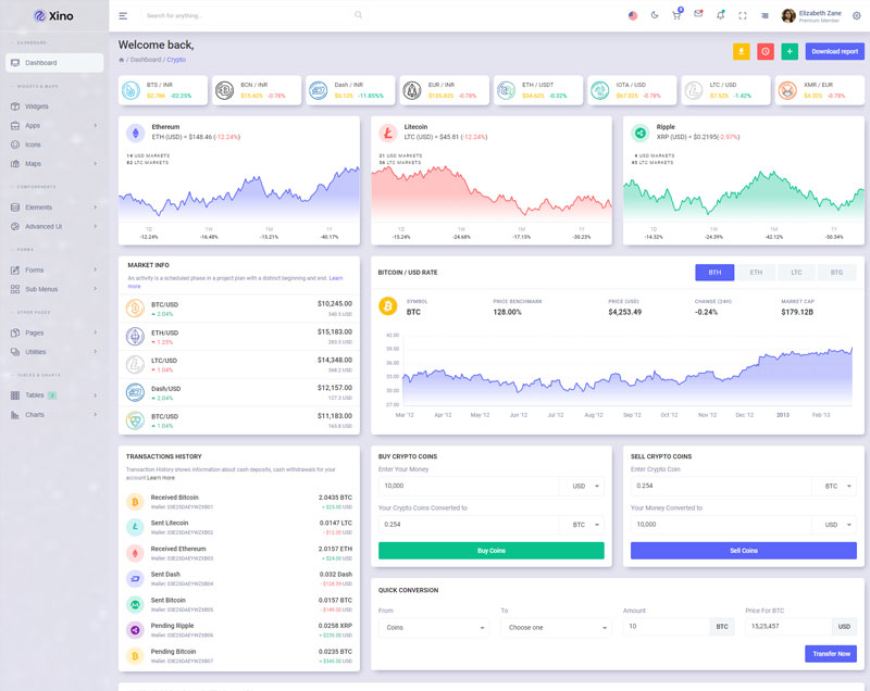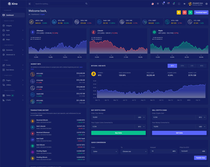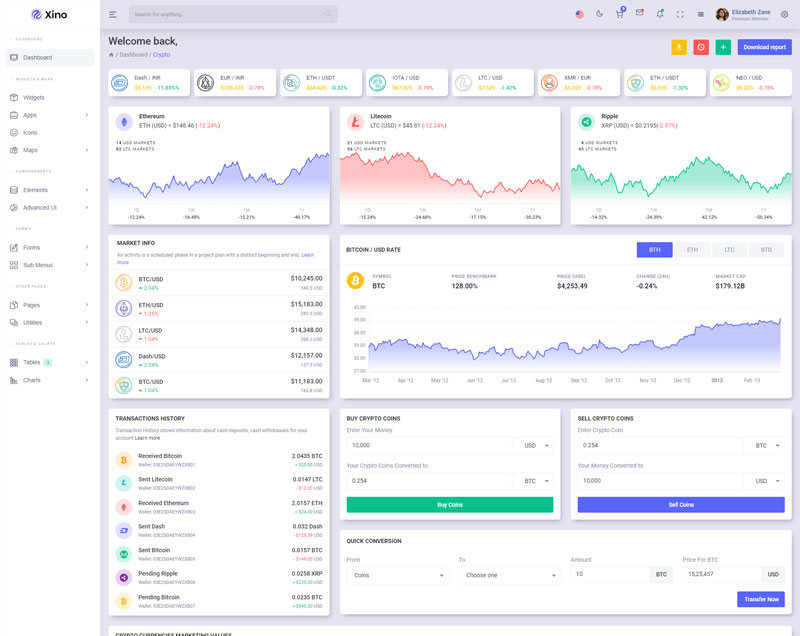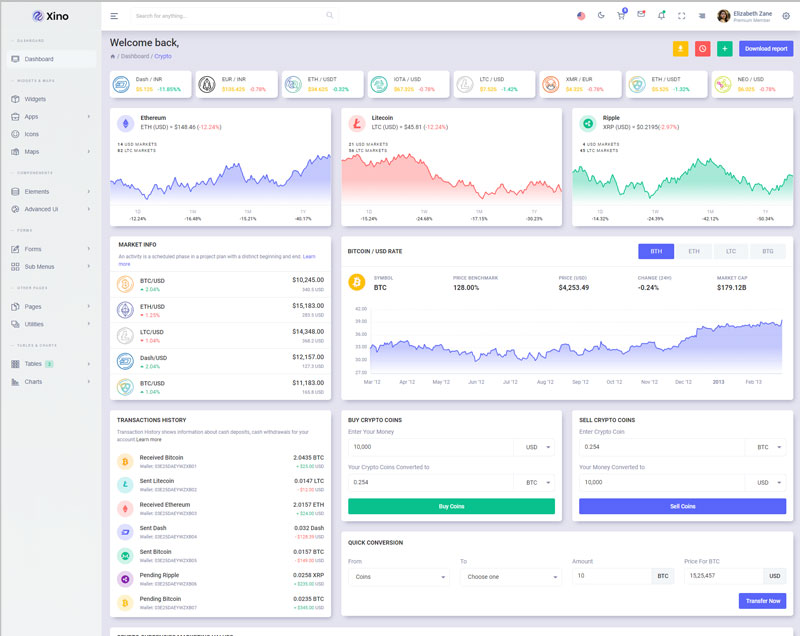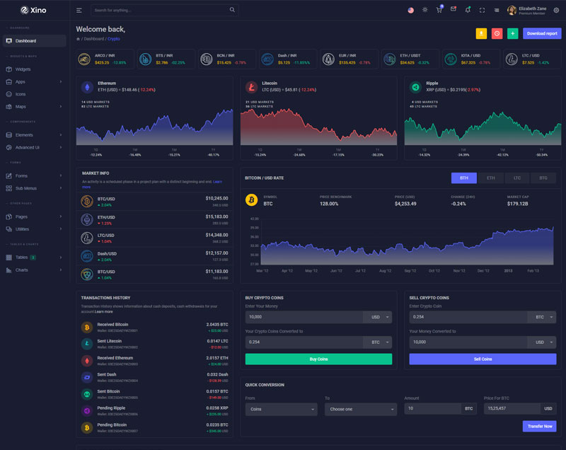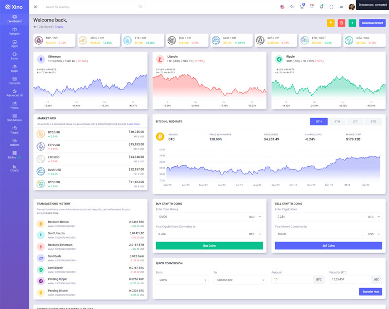 Xino Crypto Admin Template Main Features