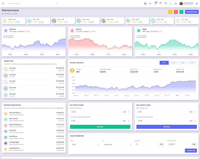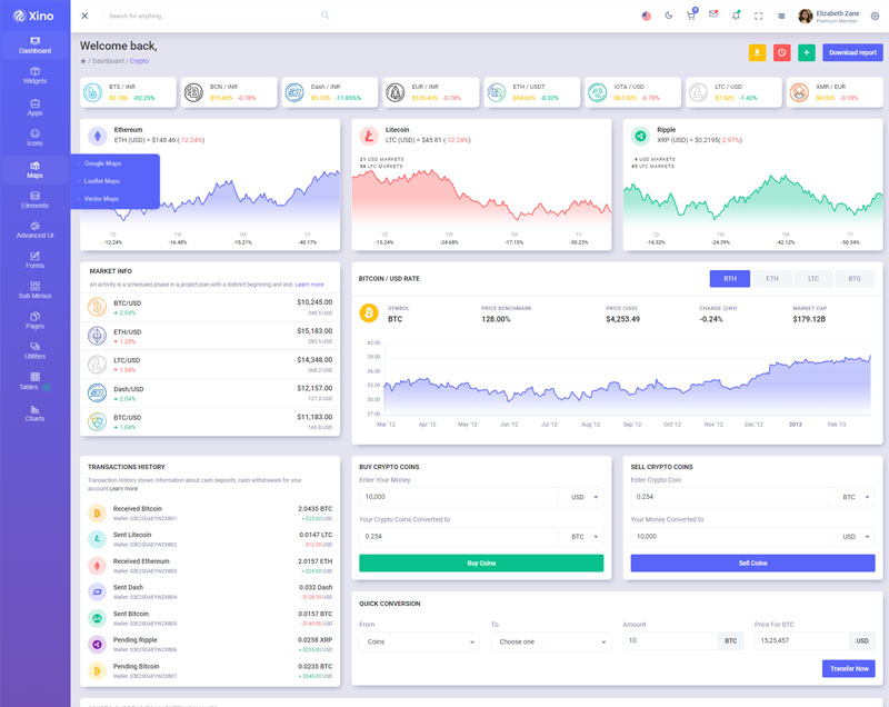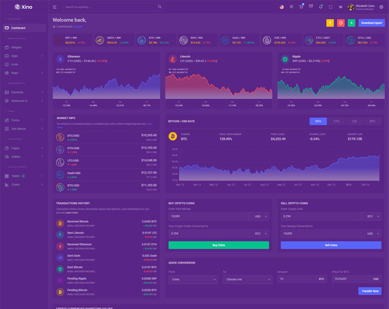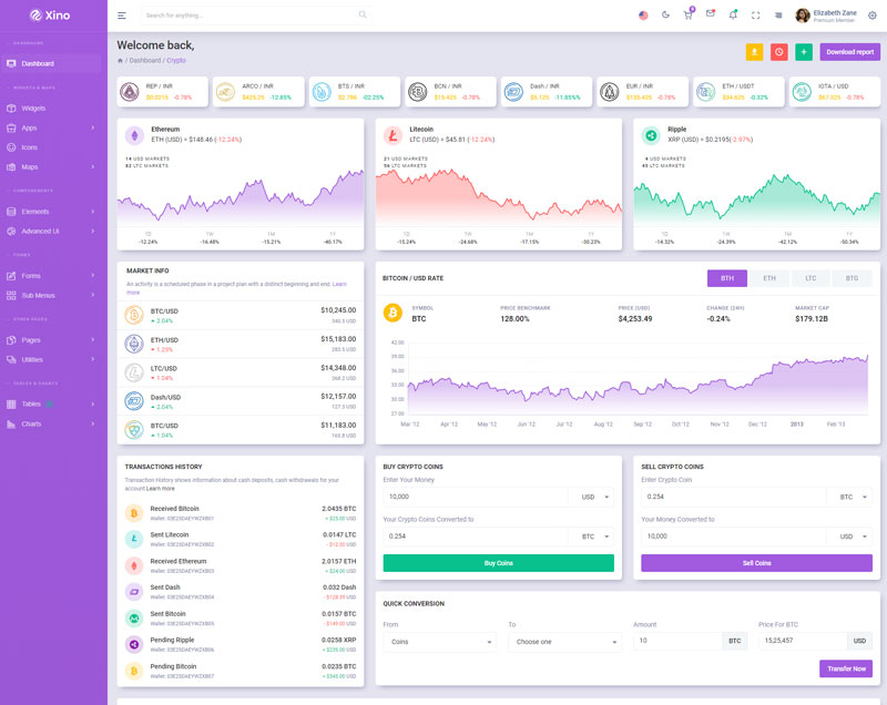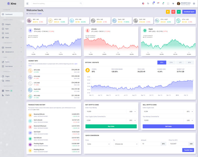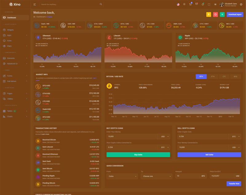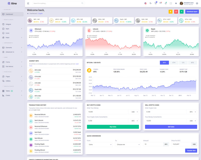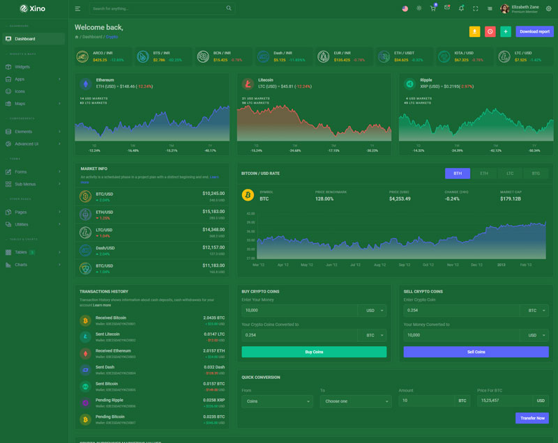 Xino Crypto Admin Template Main Features