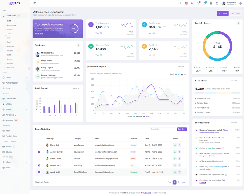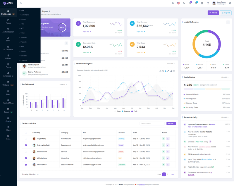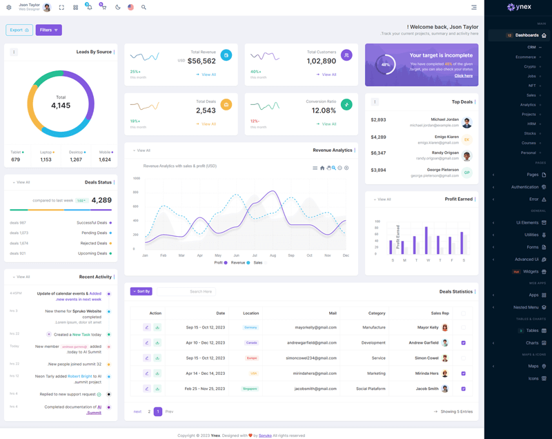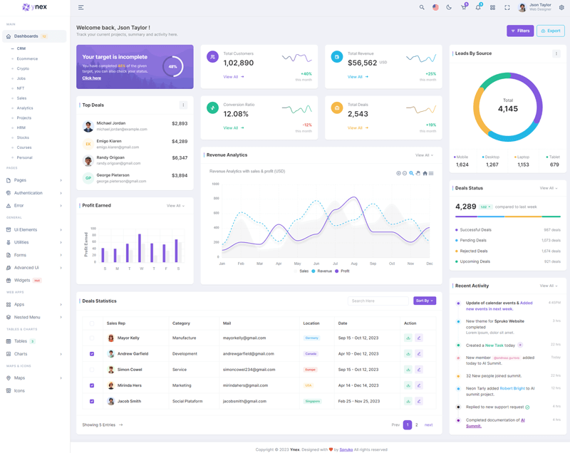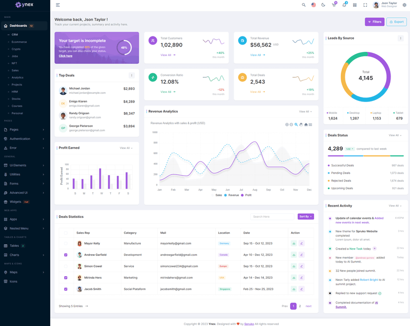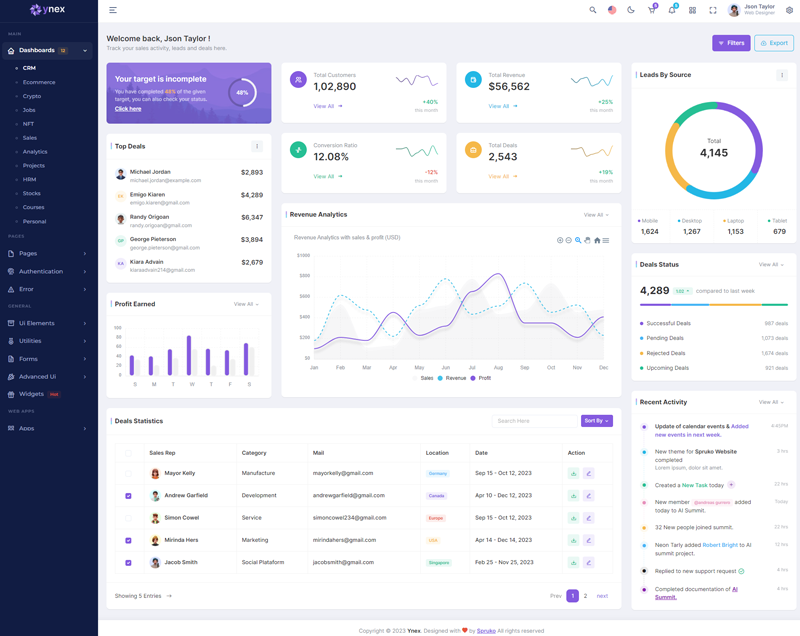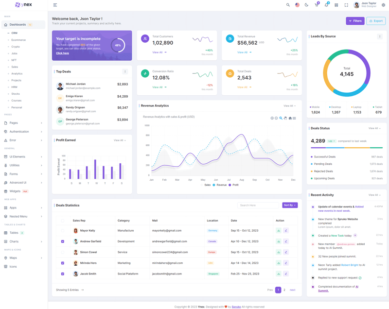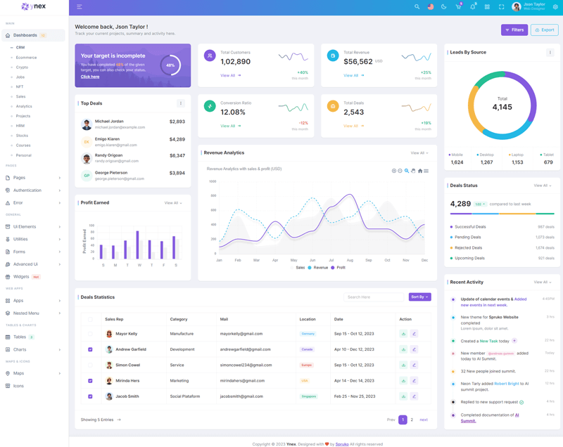 The Ynex Angular Dashboard Template comes with a wealth of ready-to-use features, saving developers significant time with its array of pre-built functionalities.