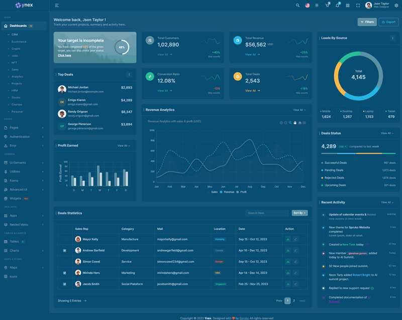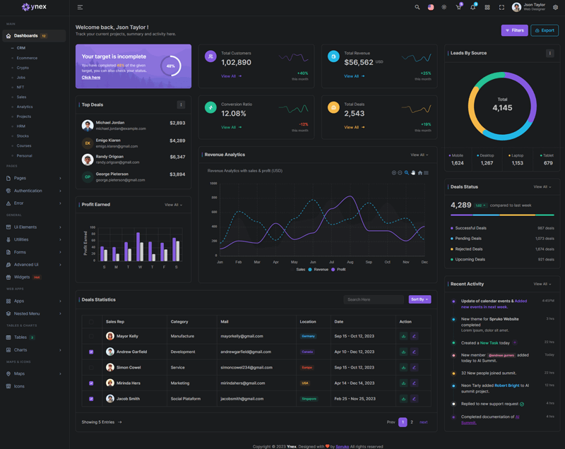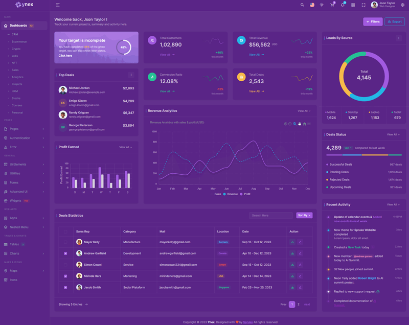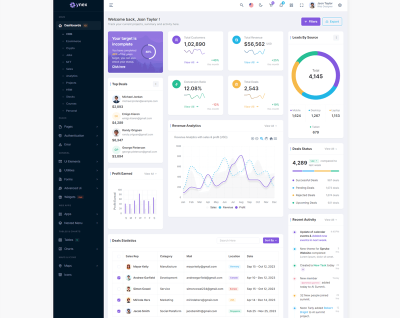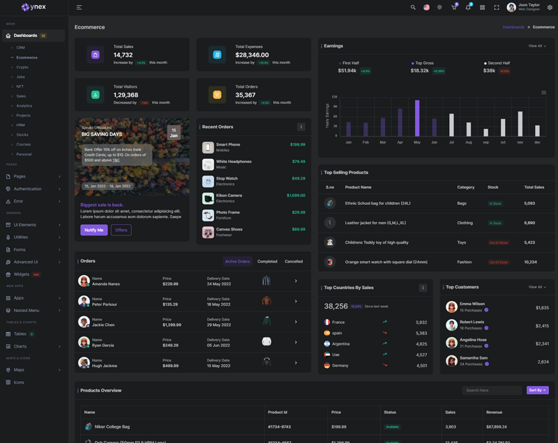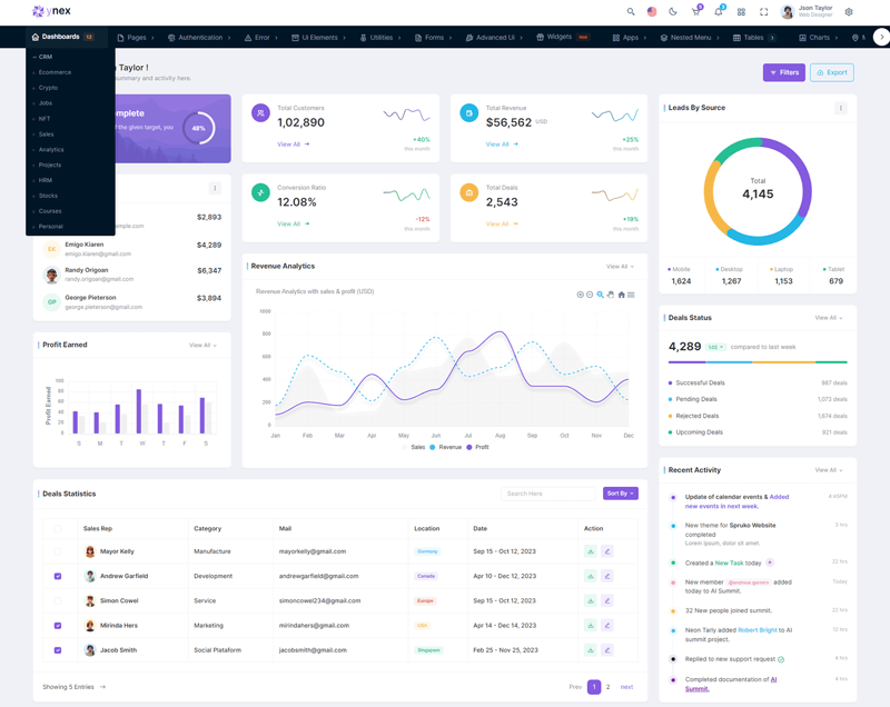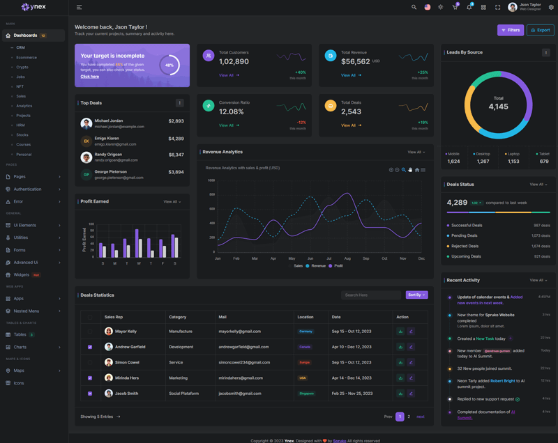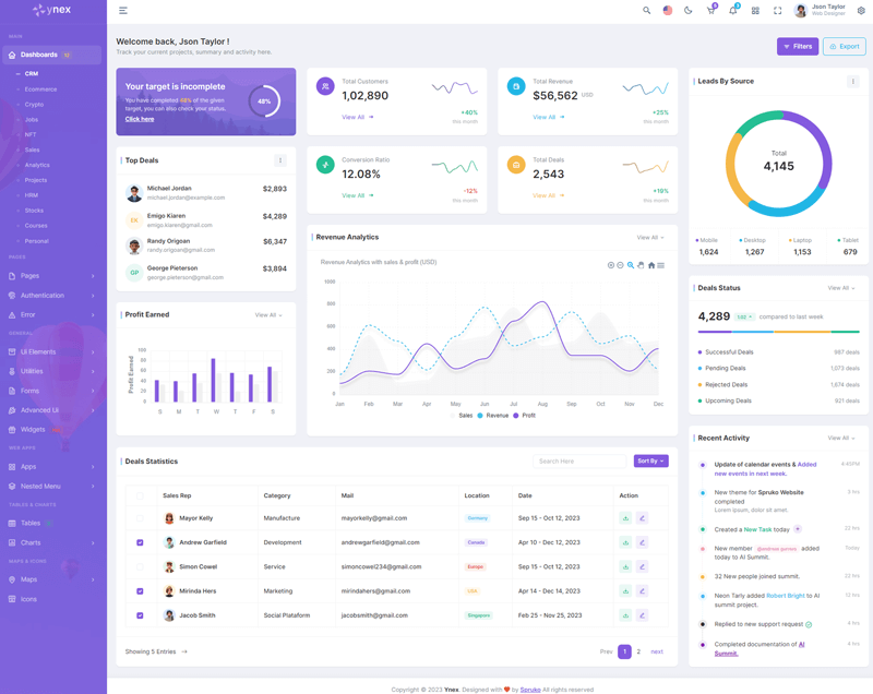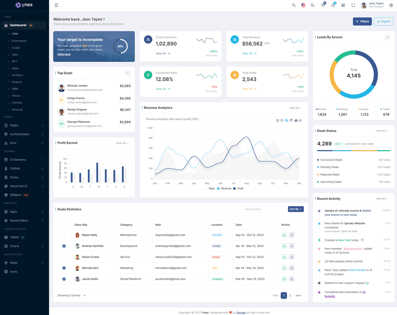 The Ynex Angular Dashboard Template comes with a wealth of ready-to-use features, saving developers significant time with its array of pre-built functionalities.