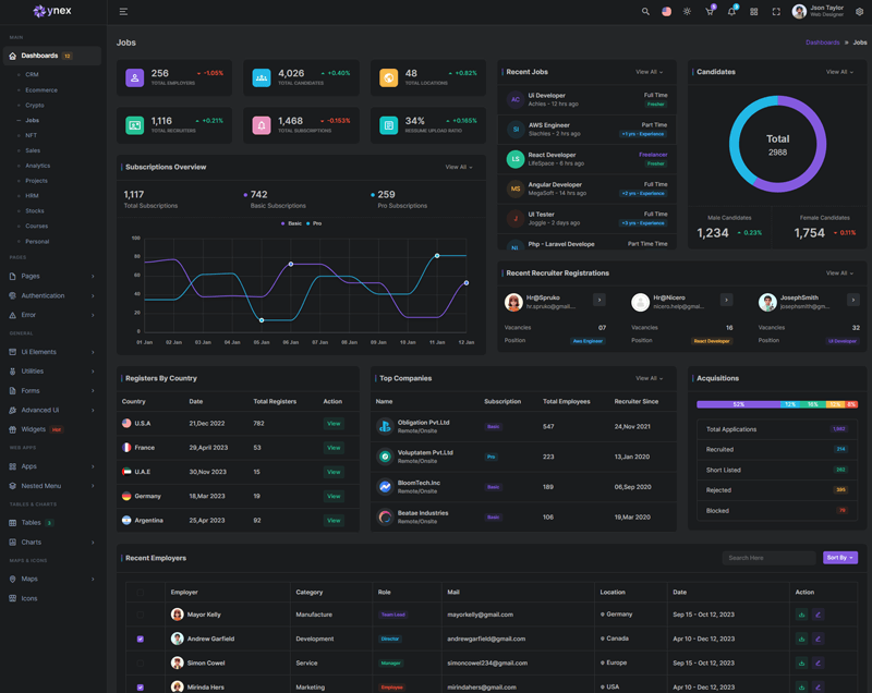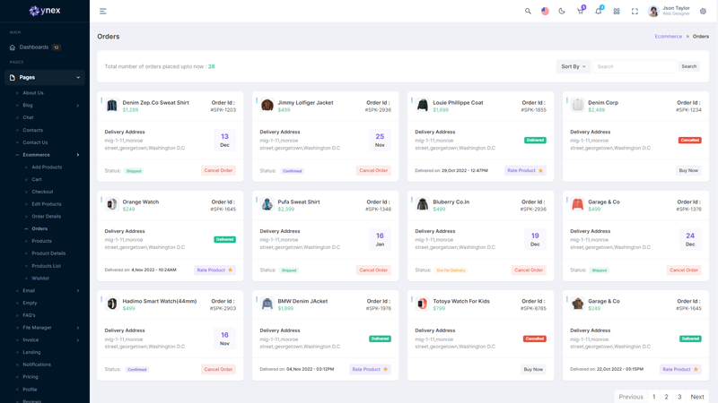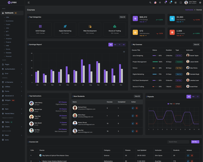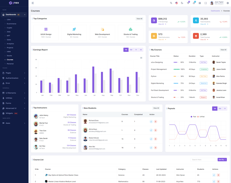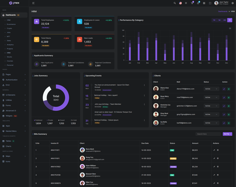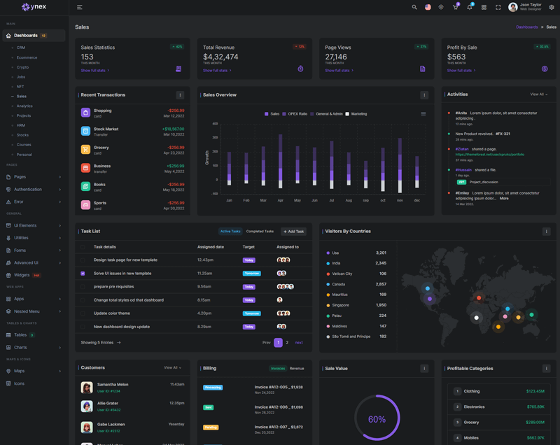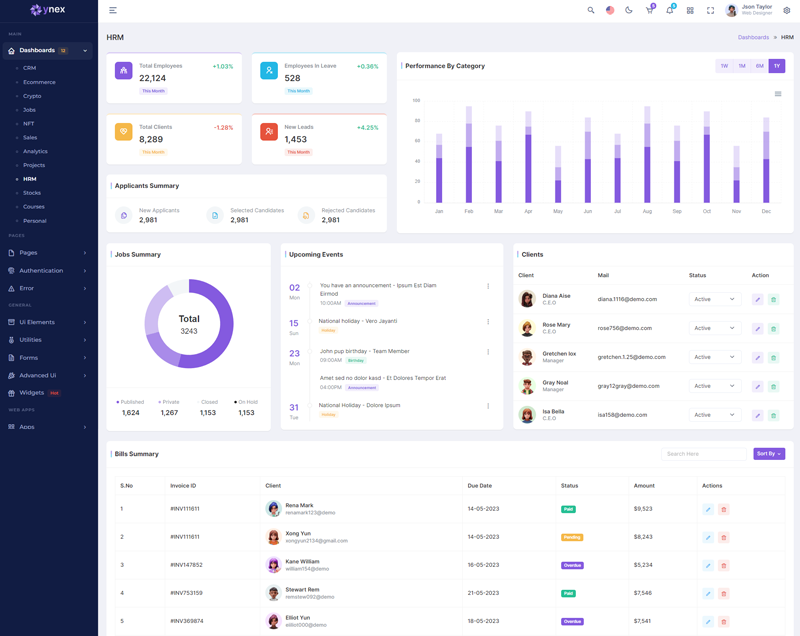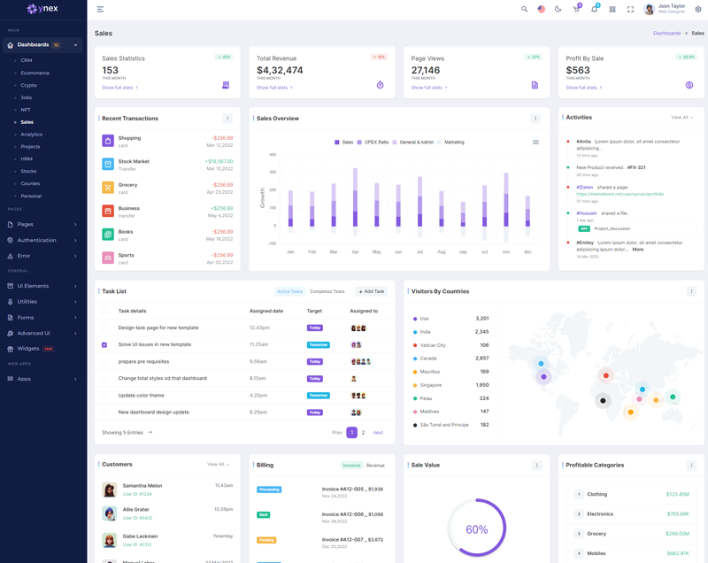 Here are some of the Main pages in the Ynex Tailwind Angular Admin template UI design; no additional customization is required as it is perfectly designed for immediate use as a template.