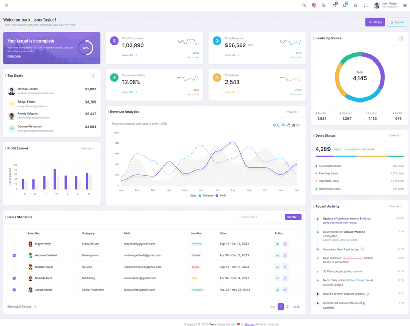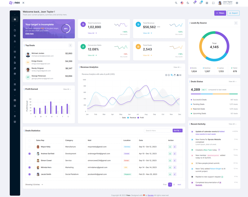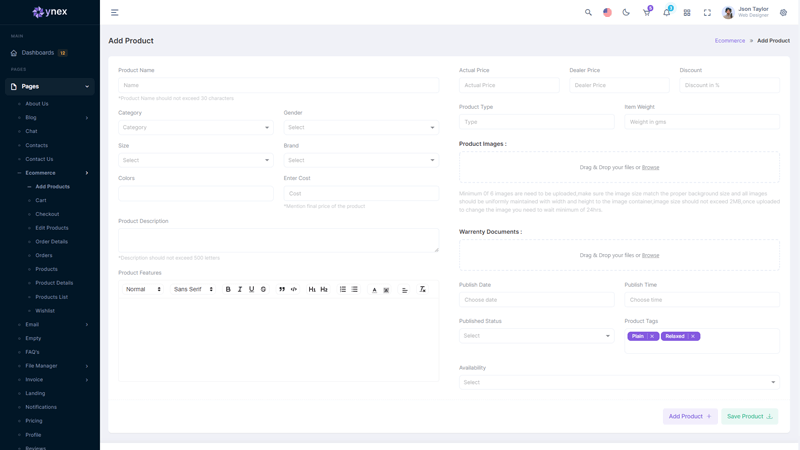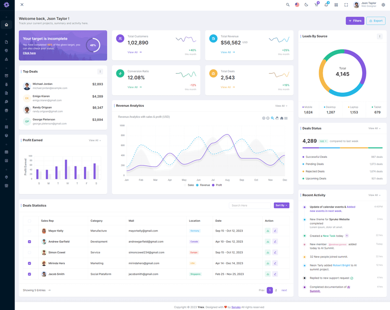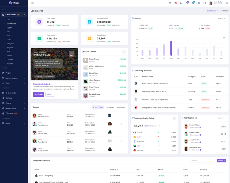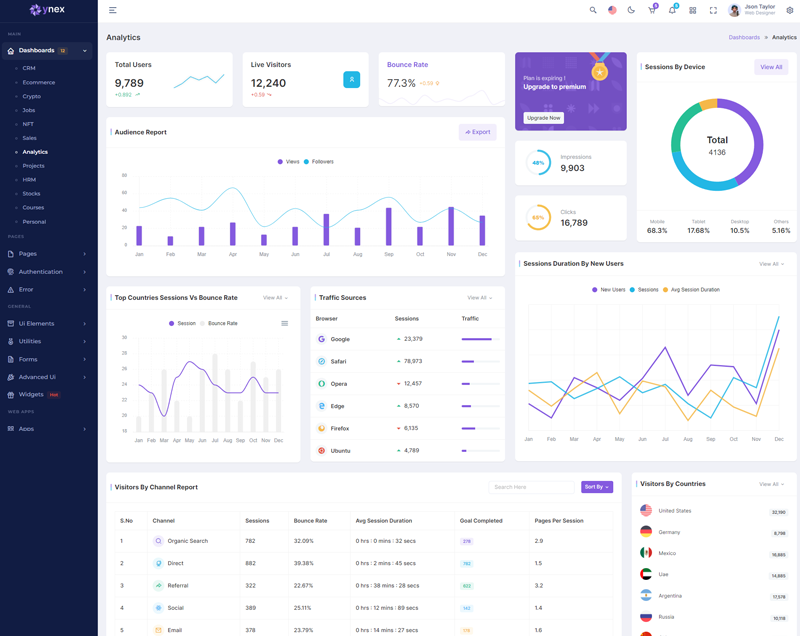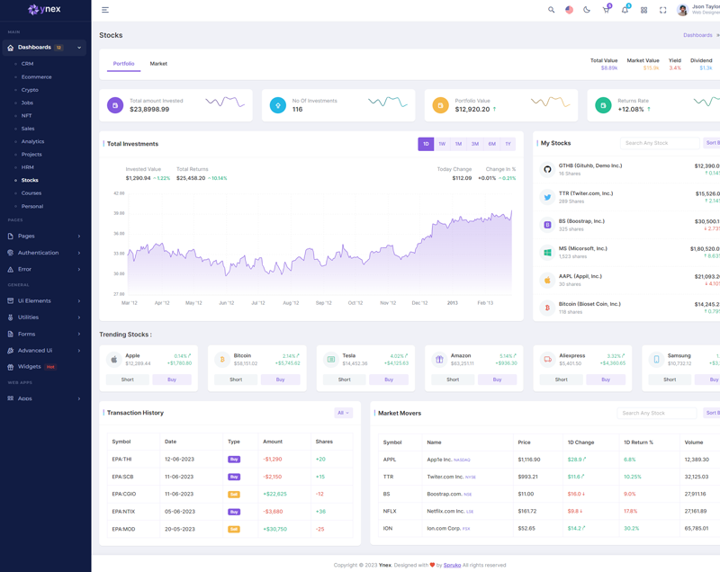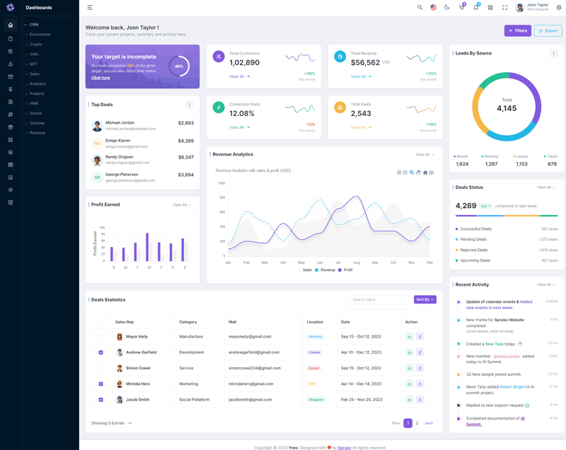 Ynex - Tailwind Angular Admin & Dashboard Template boasts essential features such as design quality, compatibility with your front-end framework, responsiveness, ease of customization, comprehensive documentation, and dedicated support. Additionally, it includes integrated plugins and other supplementary features.