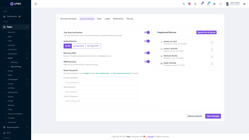 Ynex Tailwind Angular Admin & Dashboard Template Main Features
