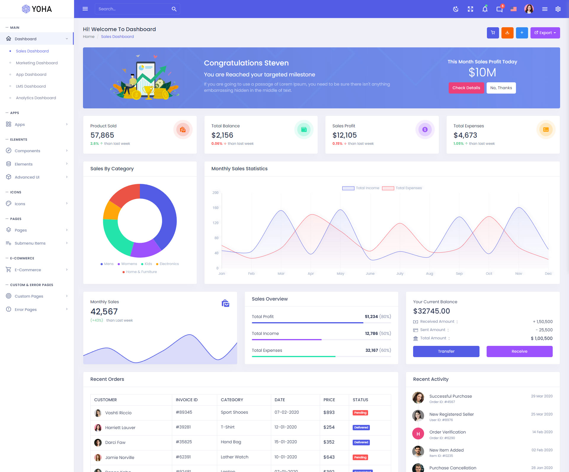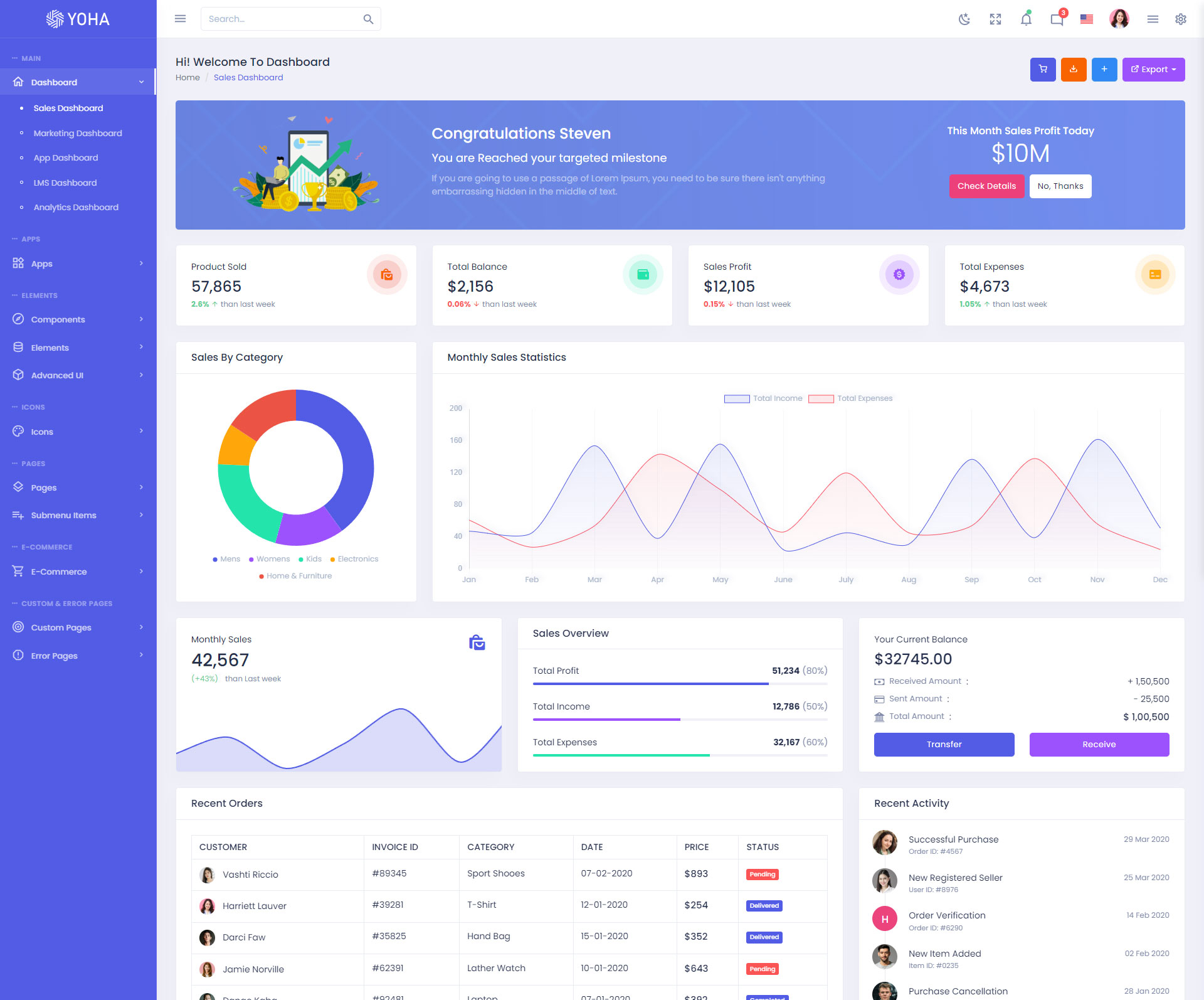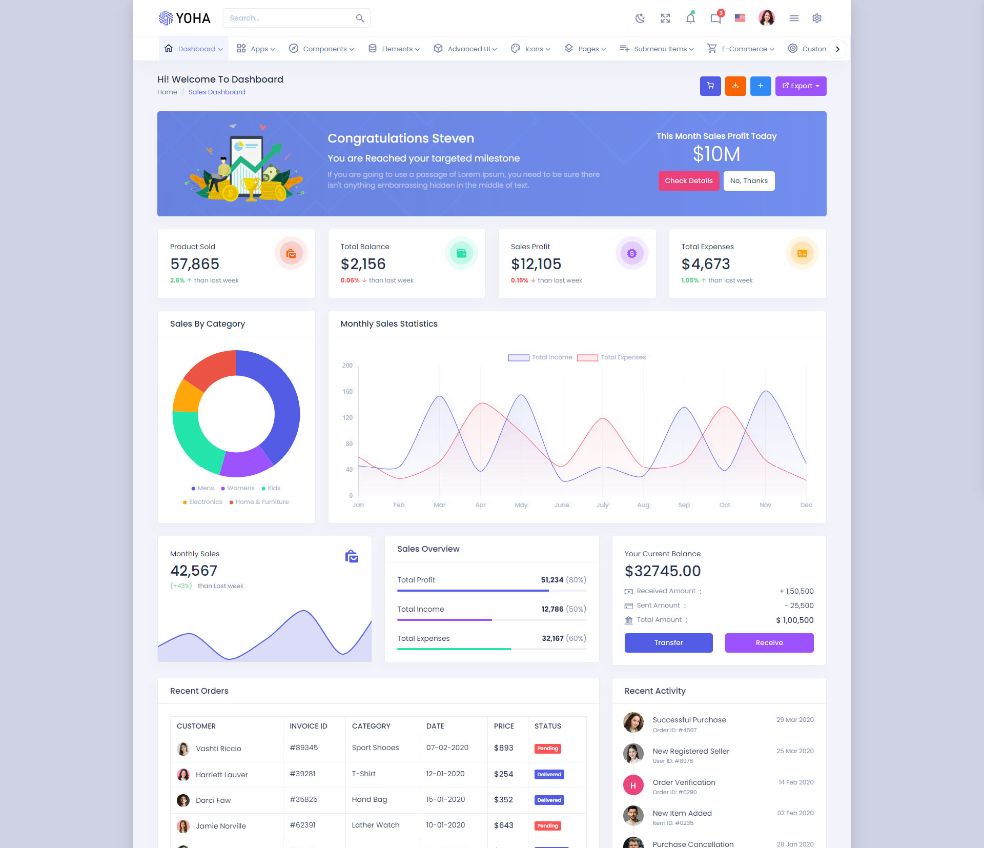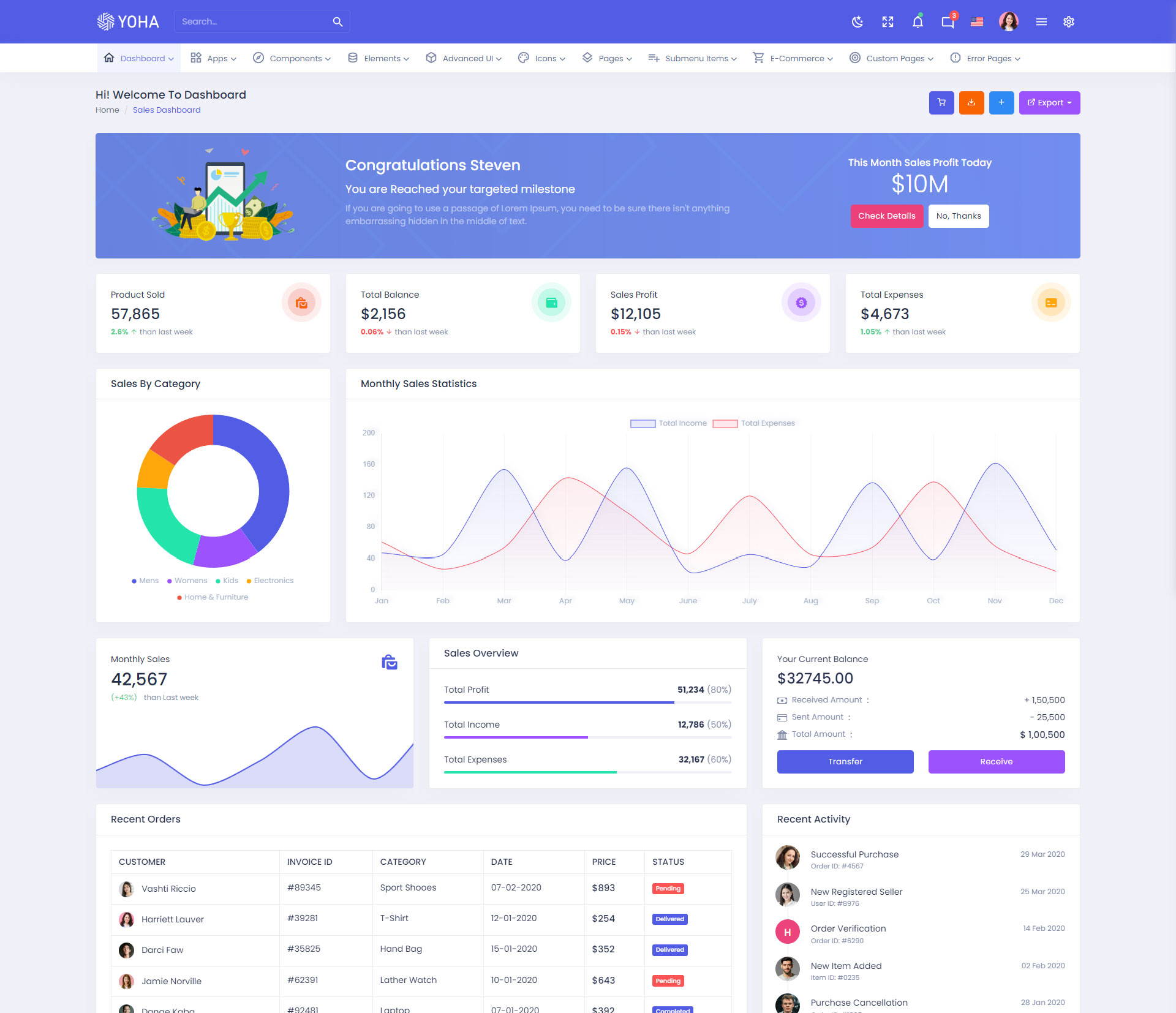 The Yoha admin template comes with ready-to-use features that are completely easy-to-use for any user, even for a beginner.