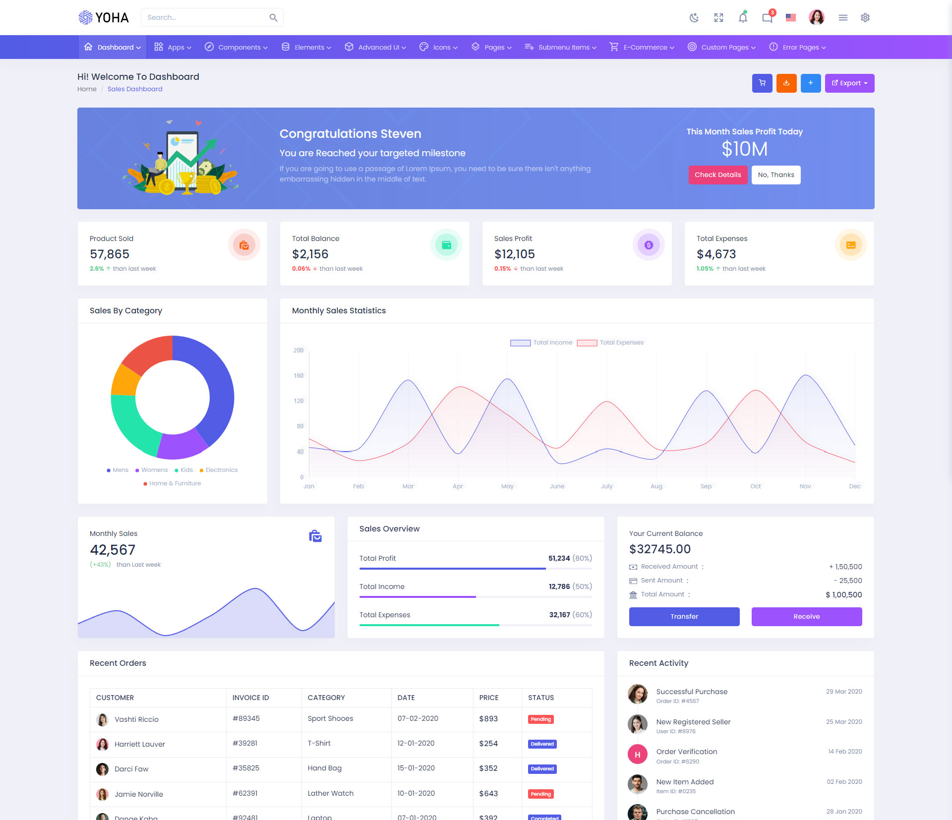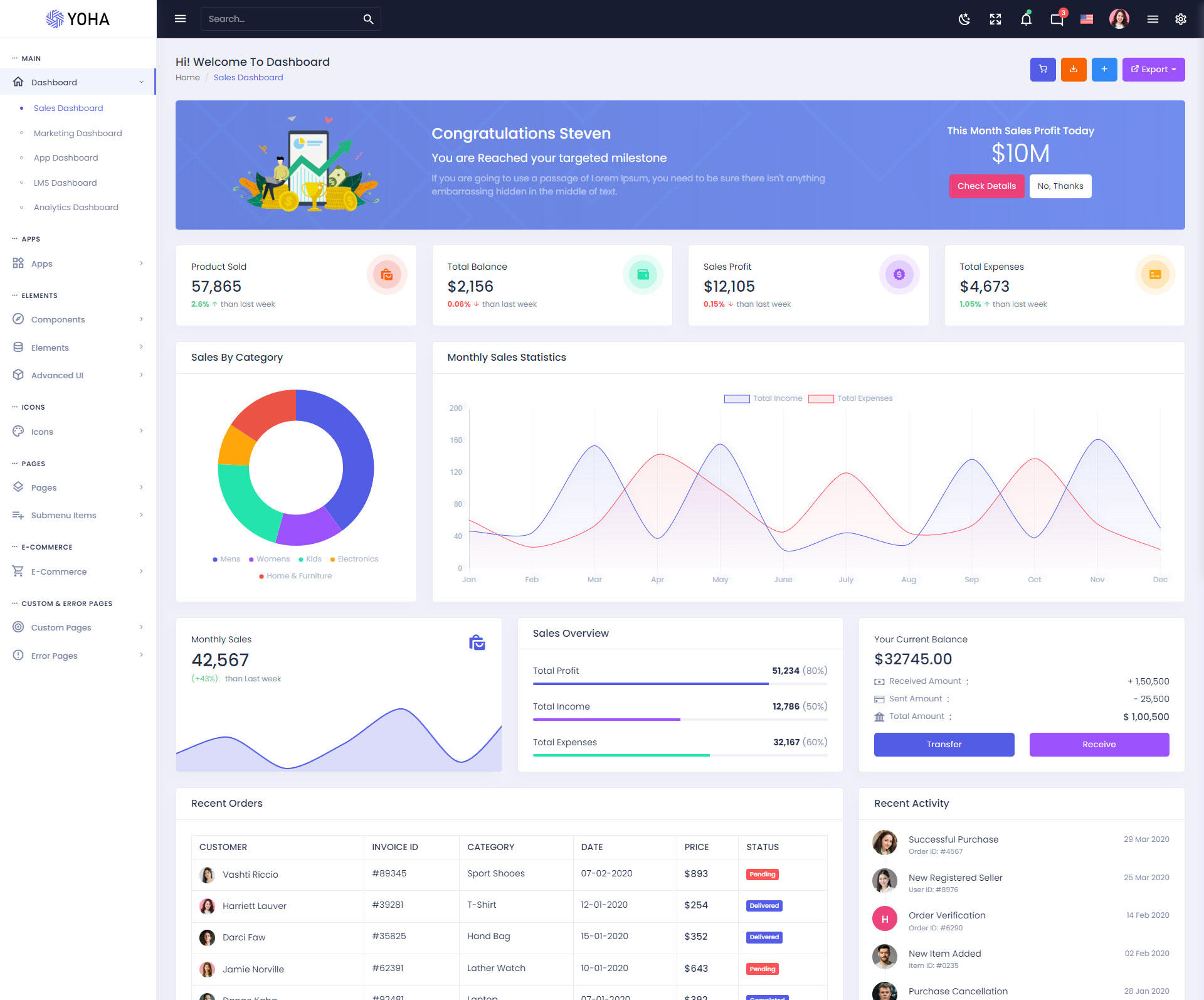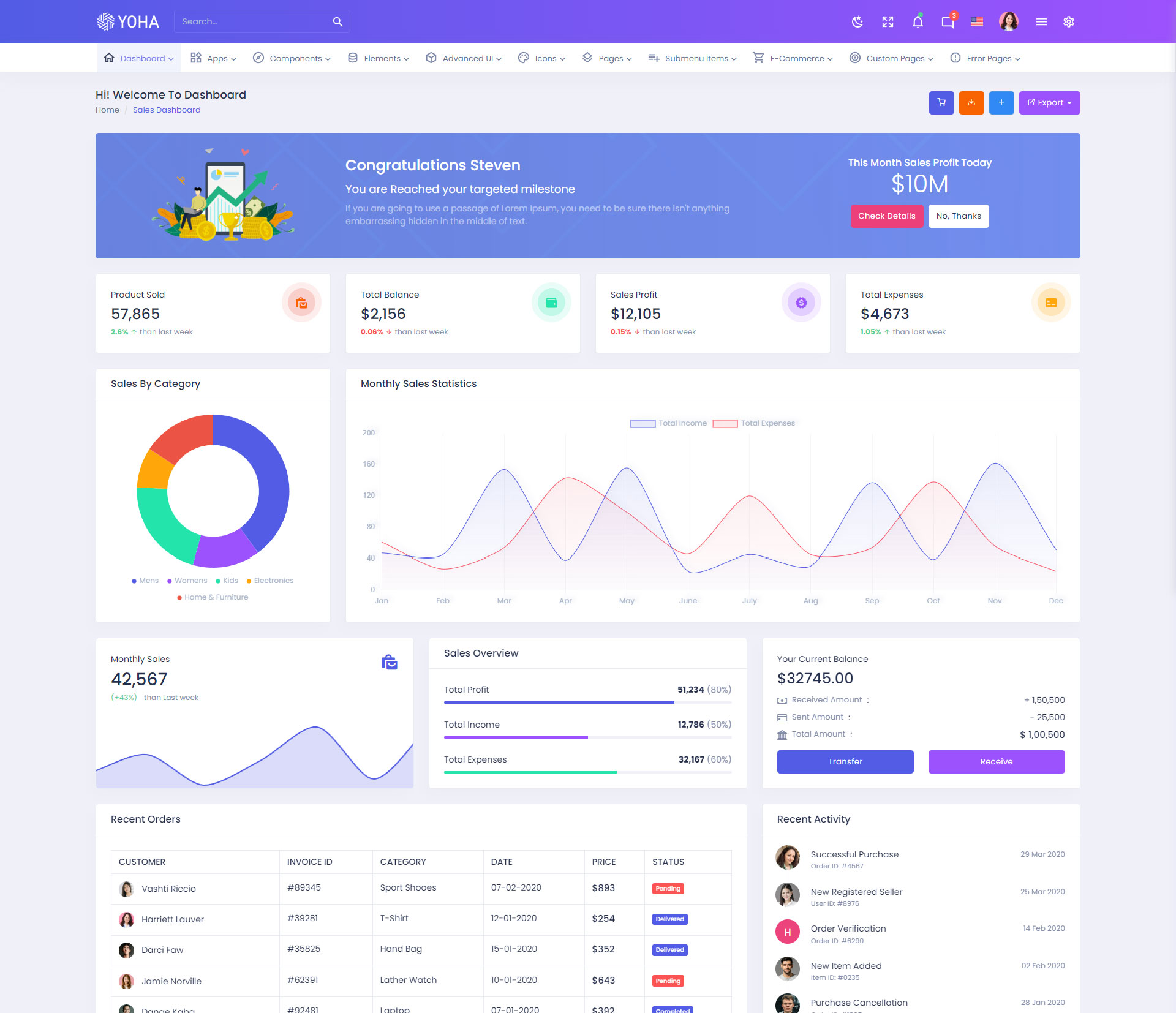The Yoha admin template comes with ready-to-use features that are completely easy-to-use for any user, even for a beginner.