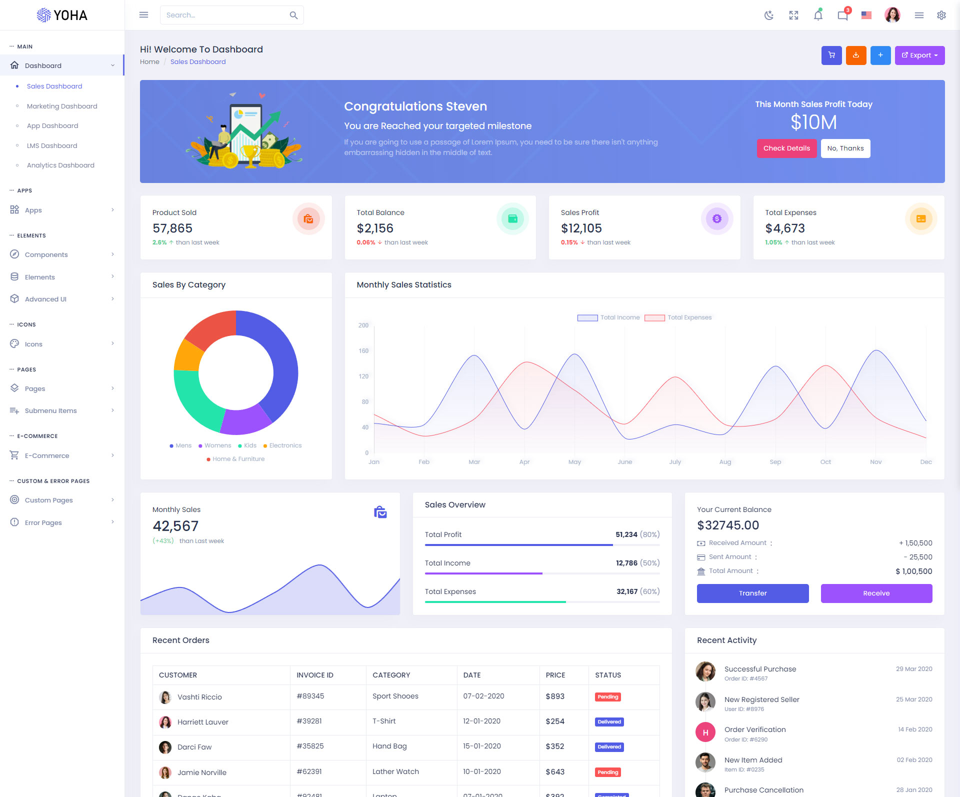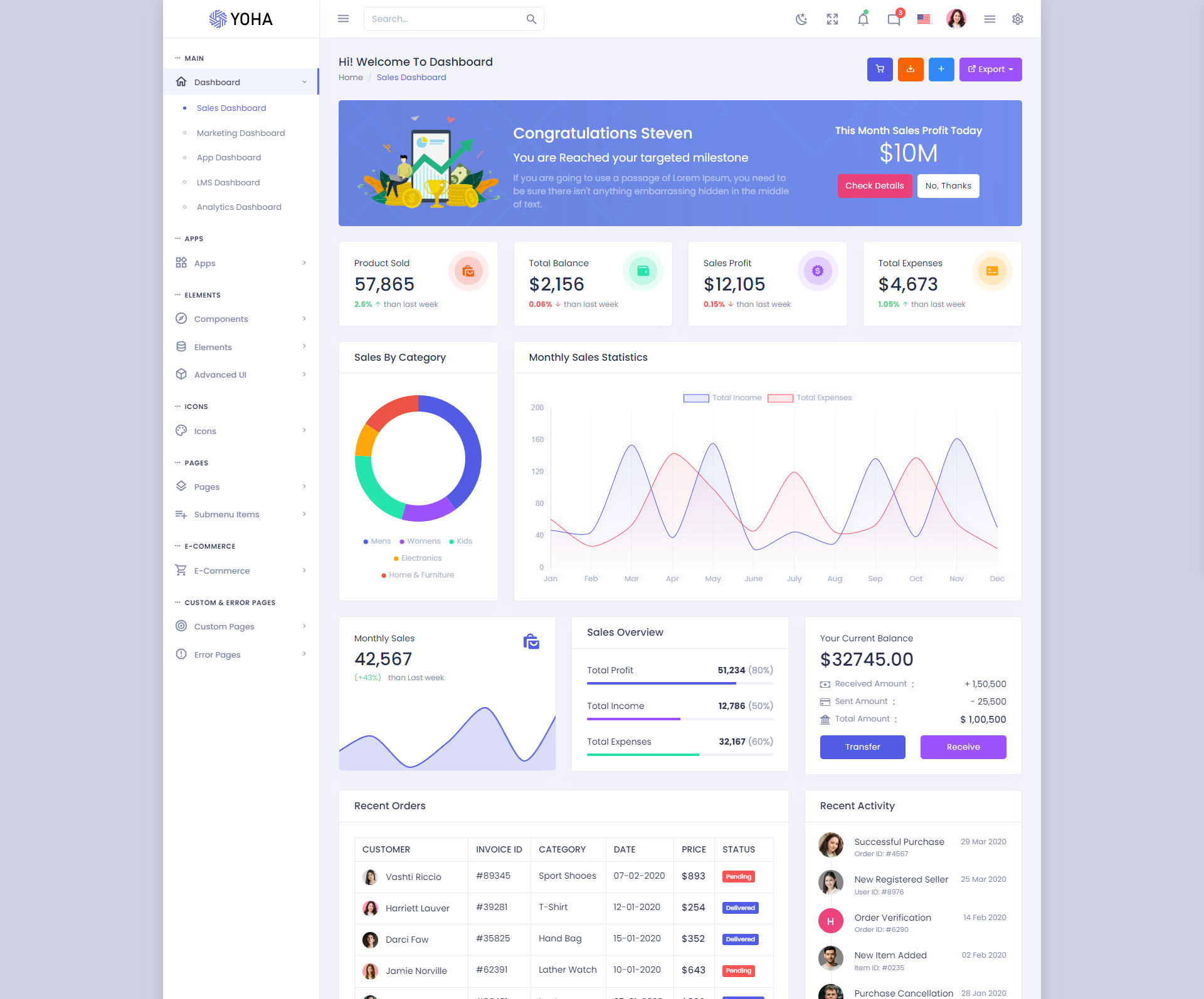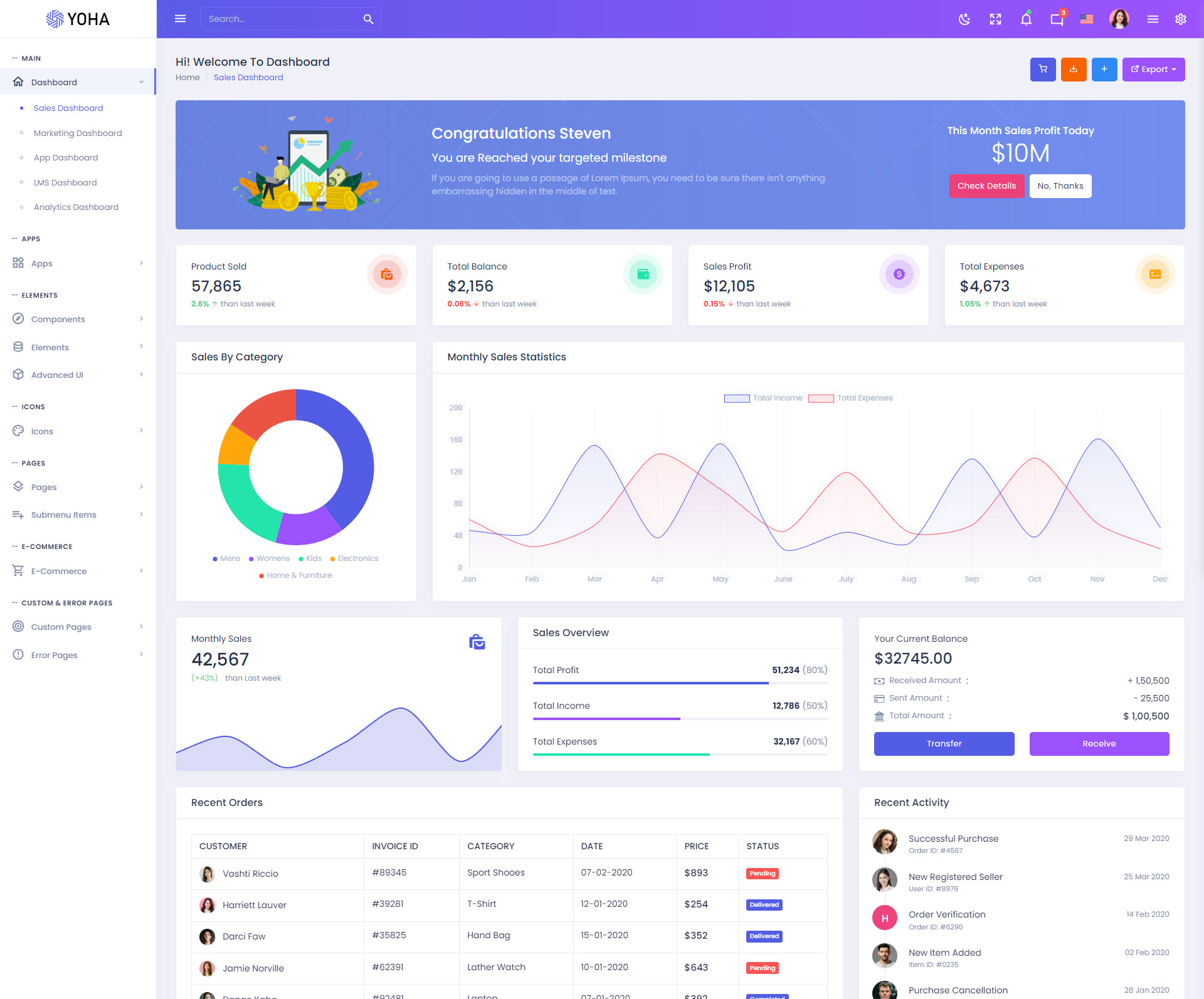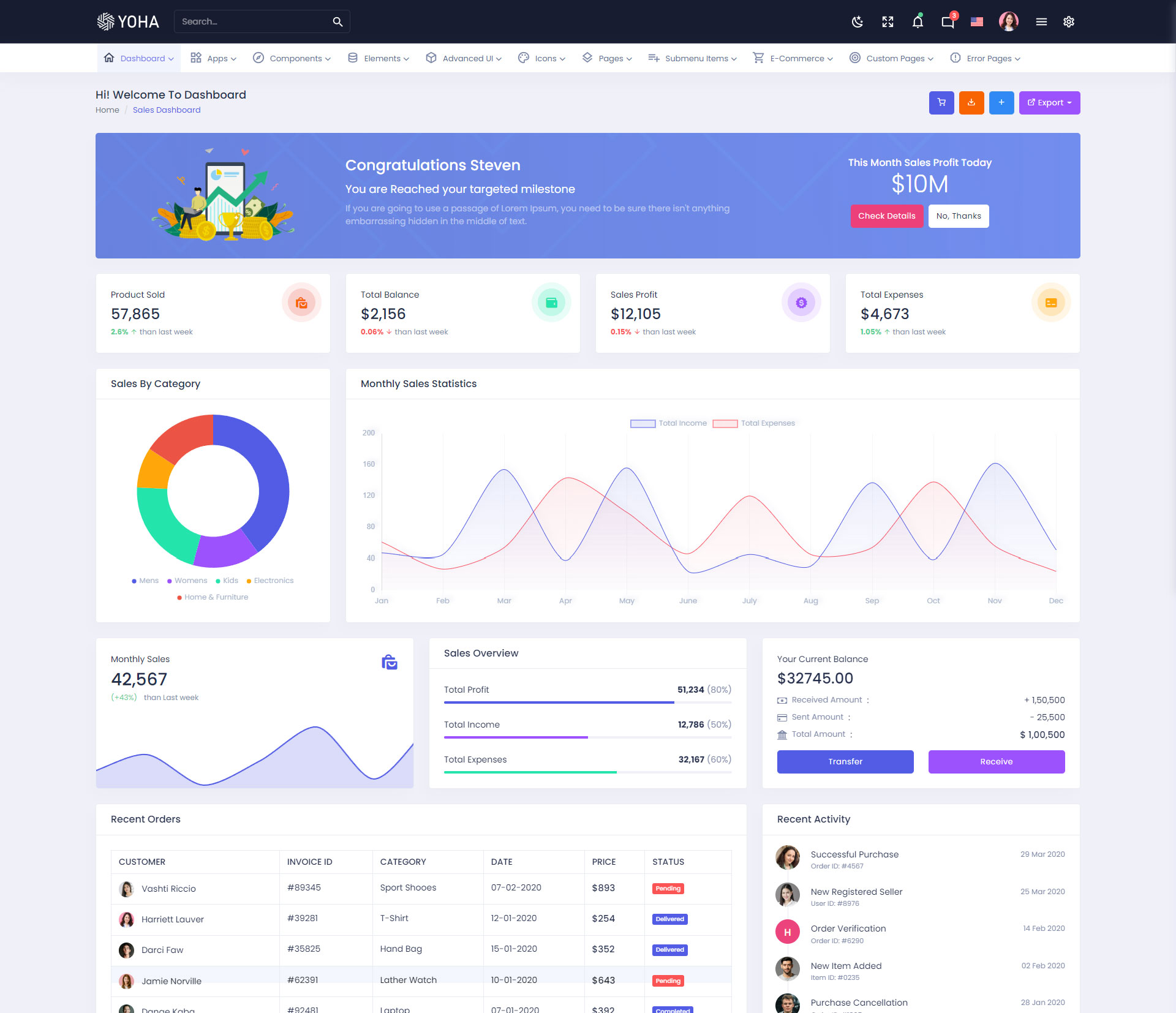 The Yoha admin template comes with ready-to-use features that are completely easy-to-use for any user, even for a beginner.