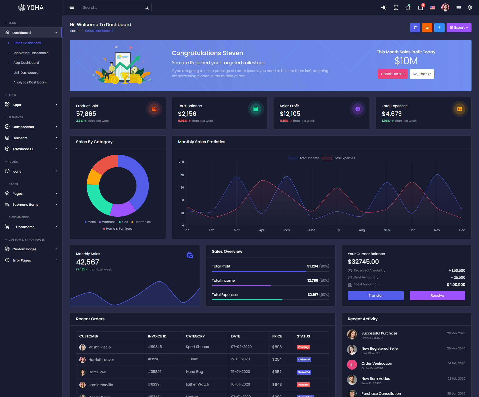 Take a look at the numerous versions we've integrated into the Yoha admin template, where you can customize it in countless ways.